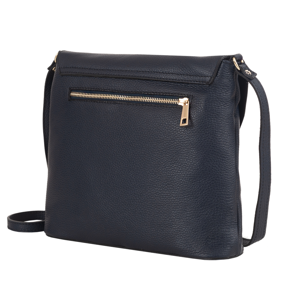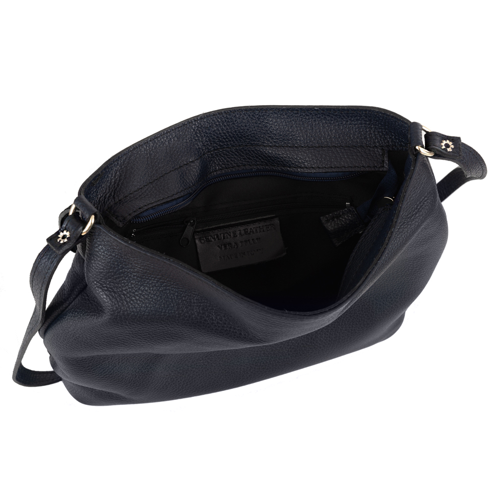 Vera Pelle - Włoska skórzana torebka listonoszka wykonana z wysokogatunkowej miękkiej naturalnej skóry. Zamykana od góry na zamek na całej szerokości + klapla na magnes. Torebka jednokomorowa + wewnątrz dodatkowo jedna kieszonka na zamek. Możliwość przedłużenia paska, aby nosić torebkę jak listonoszkę. Dodatkowa kieszonka na zamek z tyłu torebki. Metalowe elementy w kolorze złotym. Dno torebki usztywnione. Wykończenie na najwyższym poziome pozwoli cieszyć sie torebką przed długi czas. Mocna i odporna na zarysowania skóra.