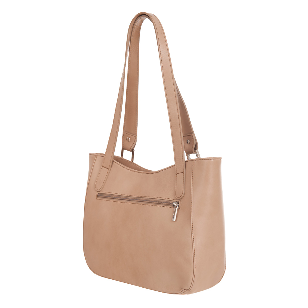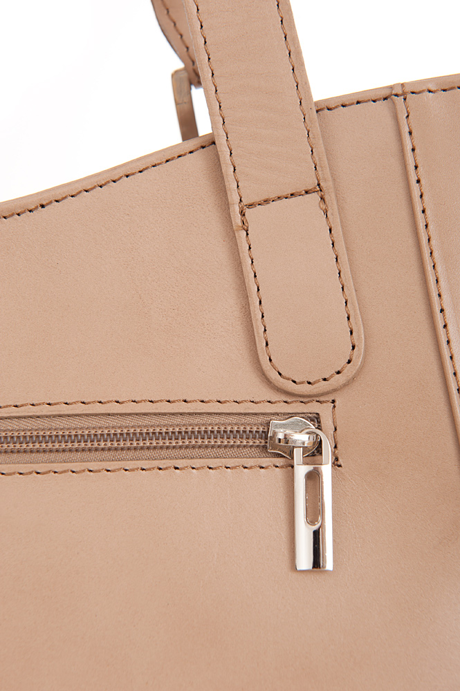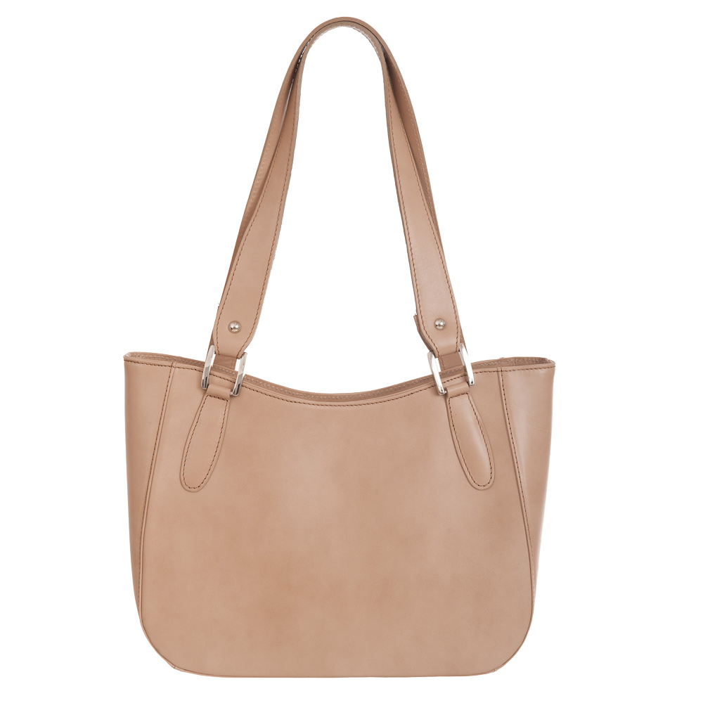 Włoska klasyczna skórzana torebka wykonana z wysokogatunkowej naturalnej gładkiej skóry licowej. Zamykana z góry na suwak. Torebka jednokomorowa przedzieloną dużą kieszenią na suwak. Wewnątrz jedna kieszonka na zamek oraz jedna na telefon. Wnętrze wykończone trwałą podszewką. Dodatkowo z tyłu torebki kieszonka na suwak. Torebka od spodu usztywniona. Mieści format A4 bez zasuwania zamka. Elementy wykończenia w kolorze srebrnym.