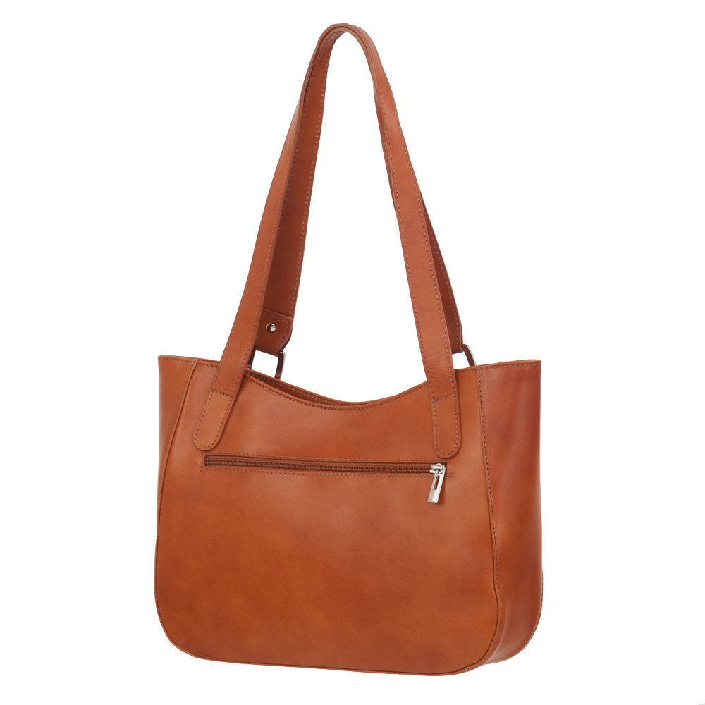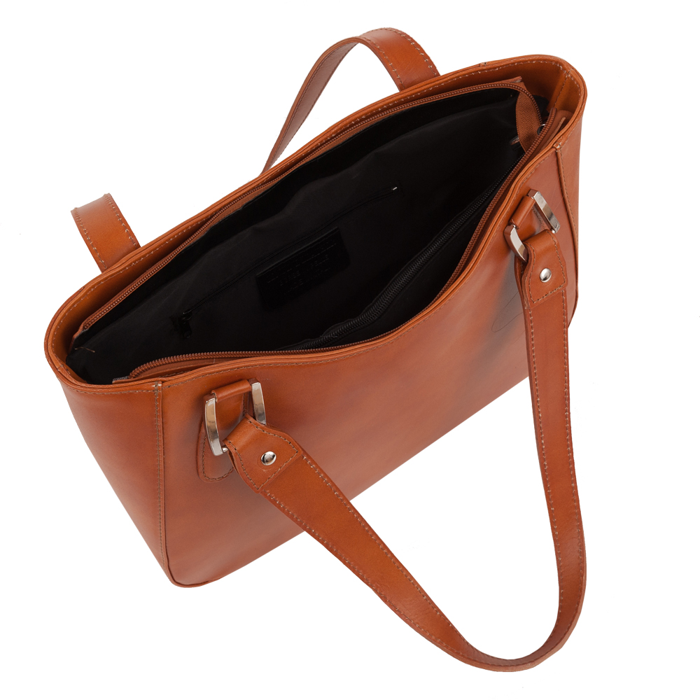 Włoska klasyczna skórzana torebka wykonana z wysokogatunkowej naturalnej gładkiej skóry licowej. Zamykana z góry na suwak. Torebka jednokomorowa przedzieloną dużą kieszenią na suwak. Wewnątrz jedna kieszonka na zamek oraz jedna na telefon. Wnętrze wykończone trwałą podszewką. Dodatkowo z tyłu torebki kieszonka na suwak. Torebka od spodu usztywniona. Mieści format A4 bez zasuwania zamka. Elementy wykończenia w kolorze srebrnym.