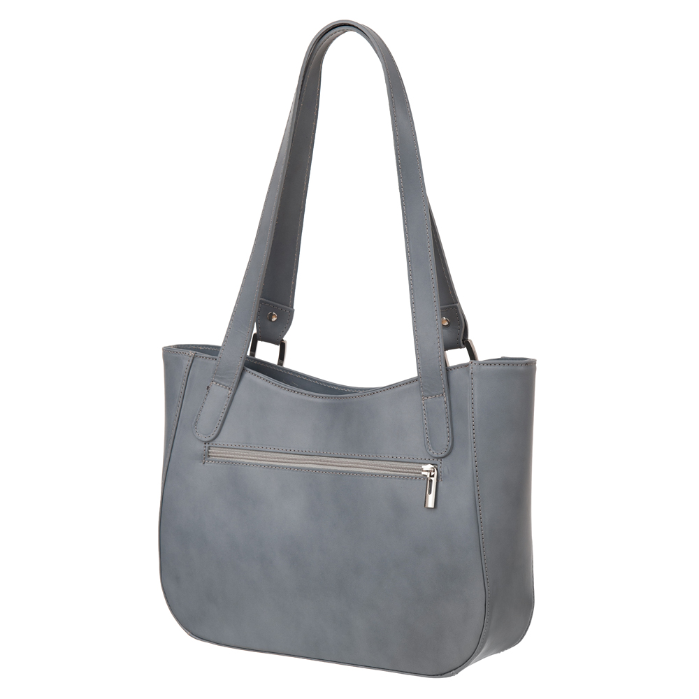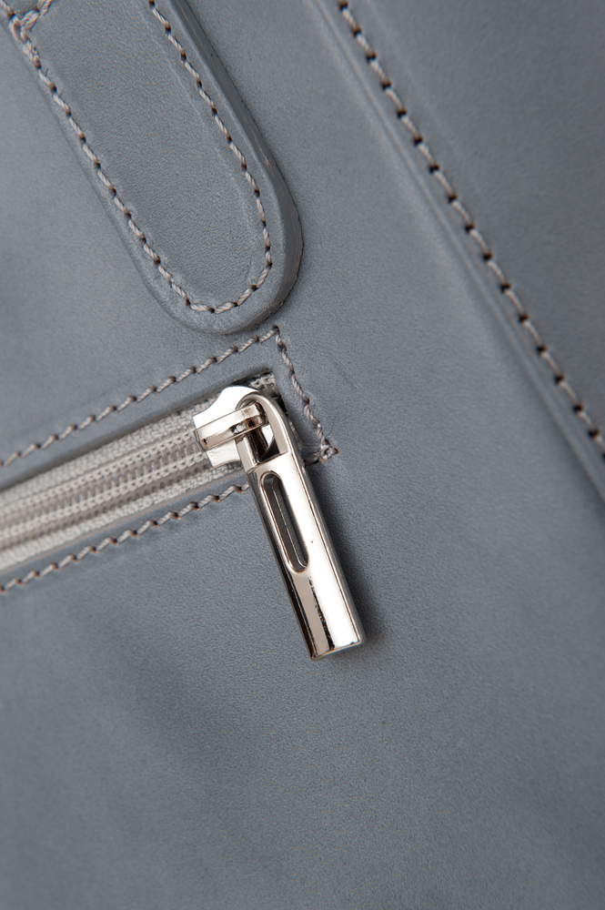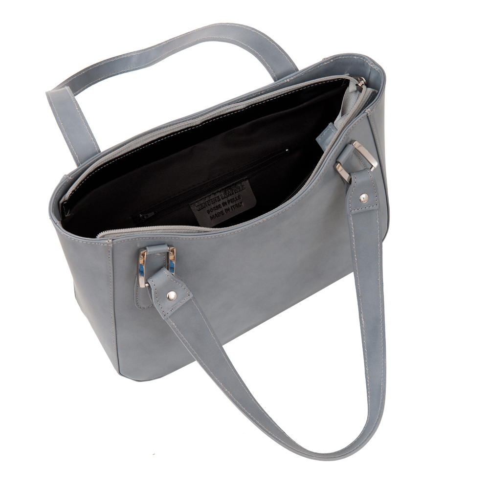 Włoska klasyczna skórzana torebka wykonana z wysokogatunkowej naturalnej gładkiej skóry licowej. Zamykana z góry na suwak. Torebka jednokomorowa przedzieloną dużą kieszenią na suwak. Wewnątrz jedna kieszonka na zamek oraz jedna na telefon. Wnętrze wykończone trwałą podszewką. Dodatkowo z tyłu torebki kieszonka na suwak. Torebka od spodu usztywniona. Mieści format A4 bez zasuwania zamka. Elementy wykończenia w kolorze srebrnym.