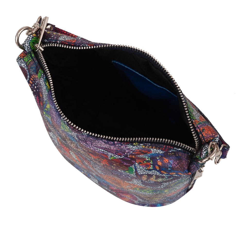 Vera Pelle - włoska modna, skórzana torebka wykonana z wysokogatunkowej mięciutkiej naturalnej skóry. Zamykana z góry na suwak. Spód torebki lekko usztywniony. Torebka jednokomorowa, wewnątrz jedna kieszonka na zamek + kieszeń na telefon. Wnętrze wykończone trwałą, ciemną podszewką. Po bokach kieszonki pionowe na suwak. Pasek o długości do 122 cm umożliwia wygodne noszenie na ramieniu lub przez ramię. W komplecie krótki pasek do noszenia w ręce o długości 37 cm. Oba paski można odpiąć od torebki.