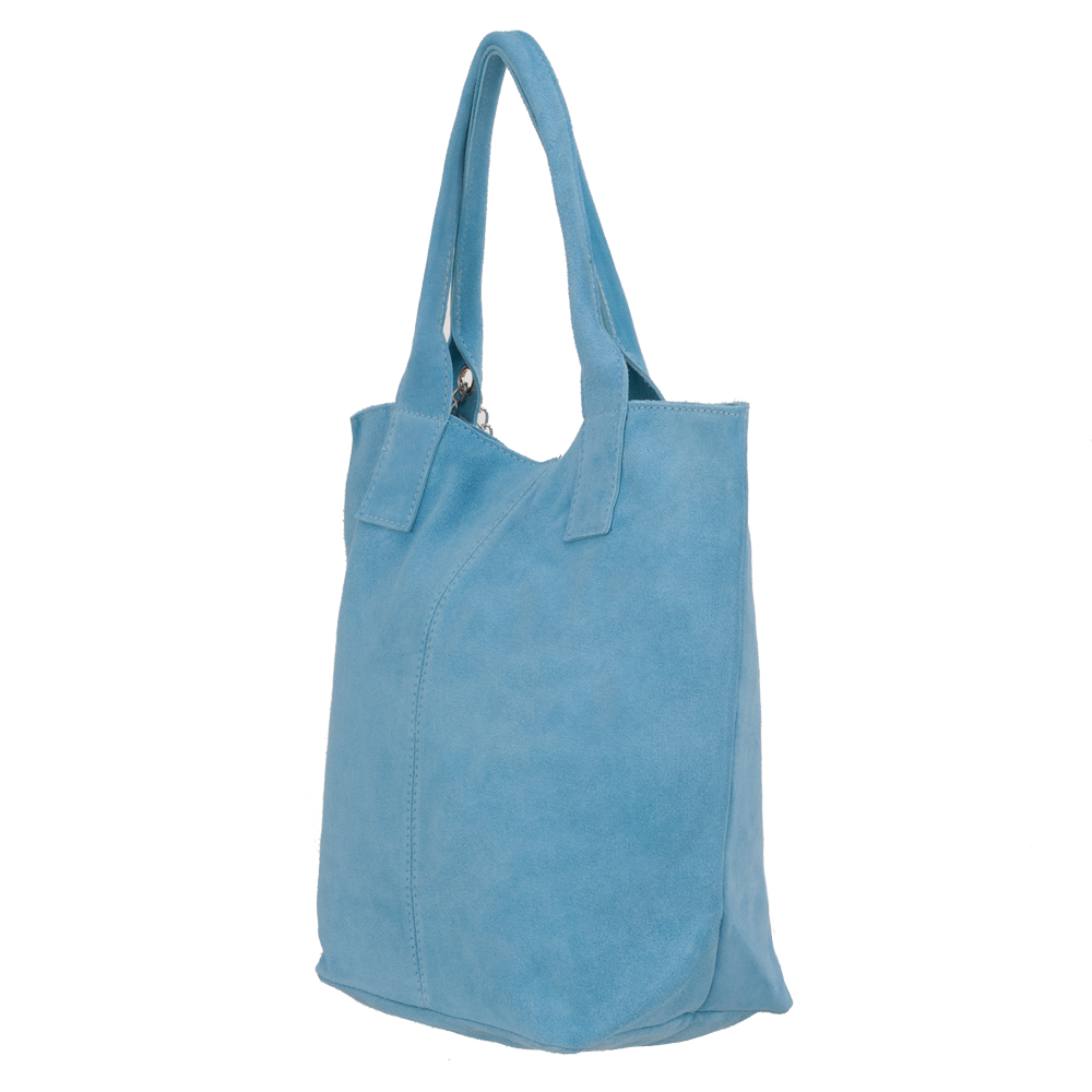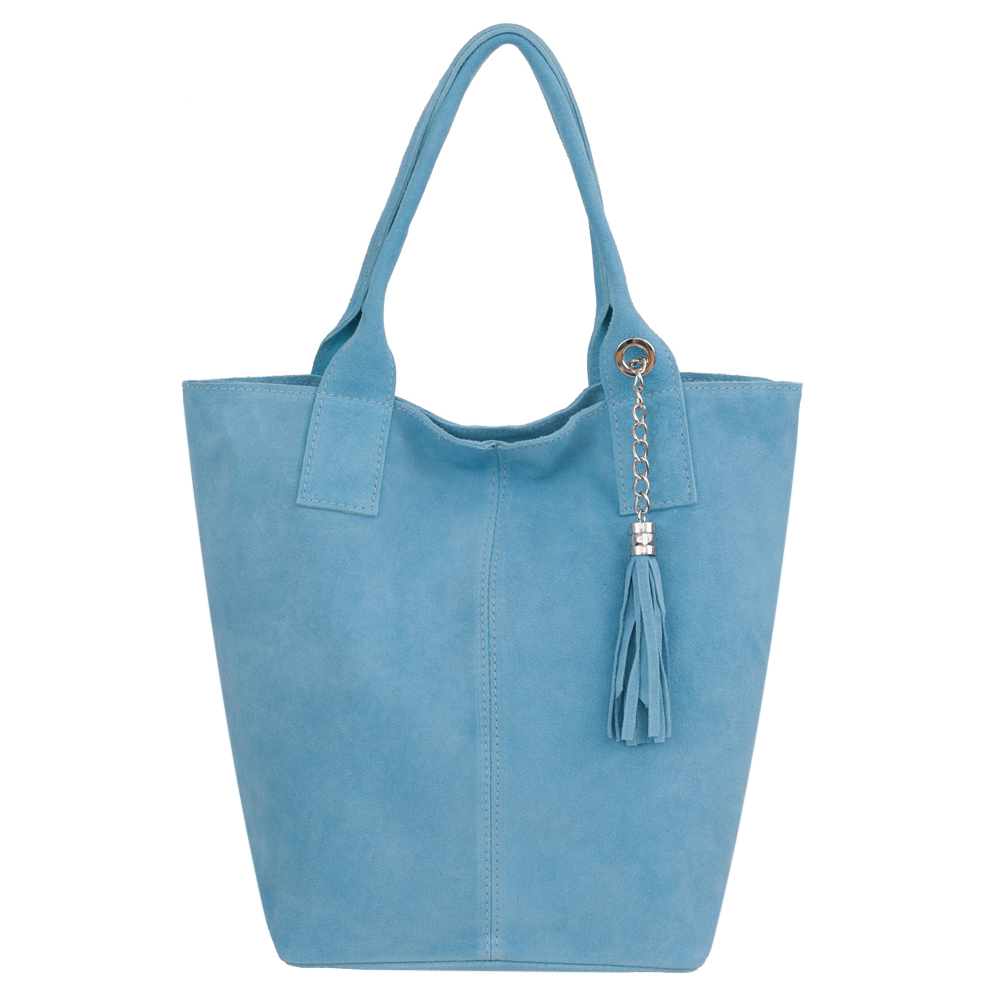 VERA PELLE - Włoska skórzana torebka worek wykonana z wysokogatunkowej naturalnej skóry zamszowej. Bardzo oryginalny i praktyczny model. Zamykana z góry na magnes. W środku saszetka na suwak. Elementy wykończenia w kolorze srebrnym. Modny pęk frędzli z przodu torebki. Swobodnie można nosić ją w dłoni, przedramieniu jak i na ramieniu. Zamsz miękki, przyjemny w dotyku.