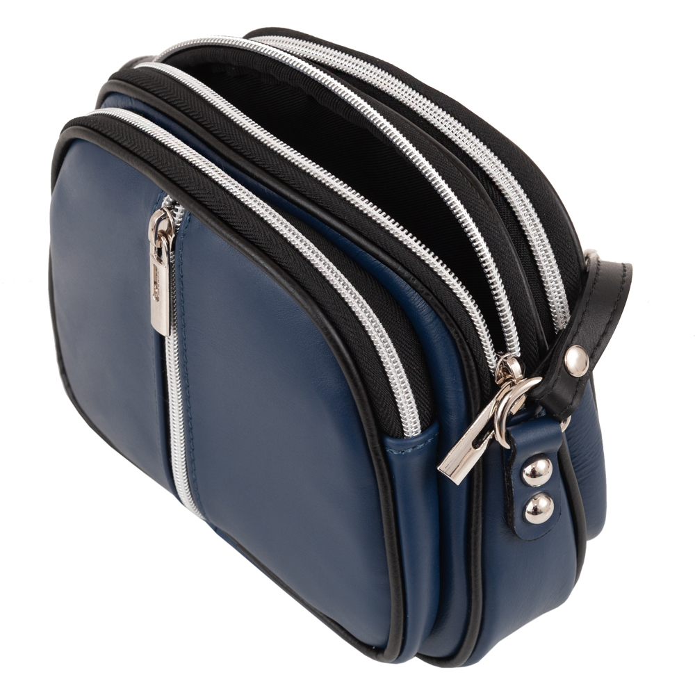 Vera Pelle - Włoska skórzana listonoszka wykonana z wysokogatunkowej naturalnej gładkiej skóry cielęcej. Zamykana z góry na suwaki. Trzy osobne przegródki zamykane na suwak + pionowa kieszonka na suwak z przodu. Wnętrze wykończone trwałą podszewką. Długi, regulowany pasek umożliwia wygodne noszenie na ramieniu.