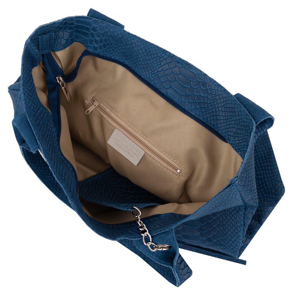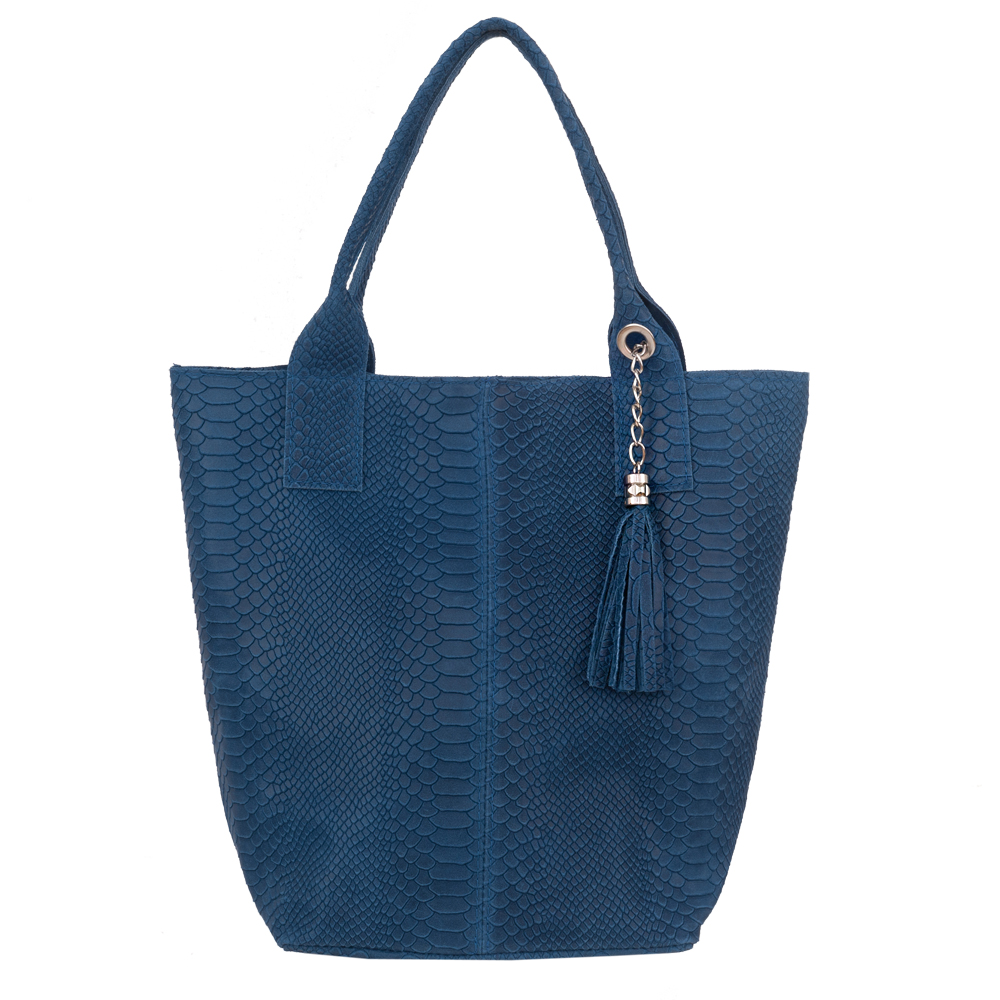VERA PELLE Włoska skórzana torebka worek wykonana z naturalnej skóry z motywem łuski krokodyla. Bardzo oryginalny i praktyczny model. Zamykana z góry na zamek. W środku mocna, materiałowa podszewka. Kieszonka na suwak + saszetka na suwak w środku + miejsce na telefon. Elementy wykończenia w kolorze srebrnym. Modny pęk frędzli z przodu torebki. Swobodnie można nosić ją w dłoni, przedramieniu jak i na ramieniu.