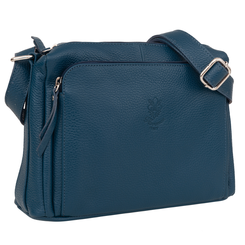Vera Pelle - Włoska skórzana torebka listonoszka wykonana z wysokogatunkowej miękkiej naturalnej skóry dolaro. Skóra odporna na zarysowania. Zamykana od góry na zamek na całej szerokości.