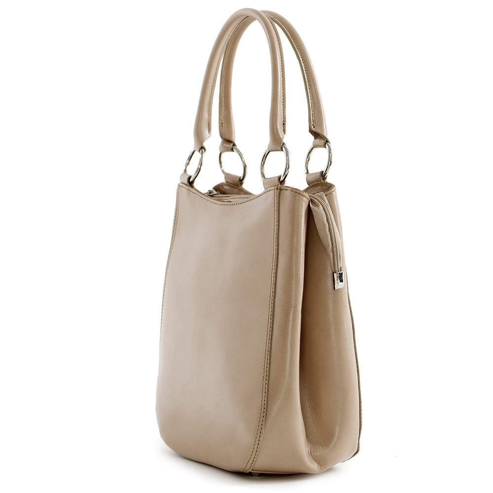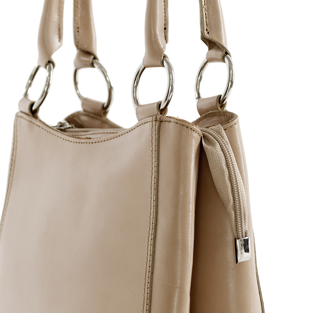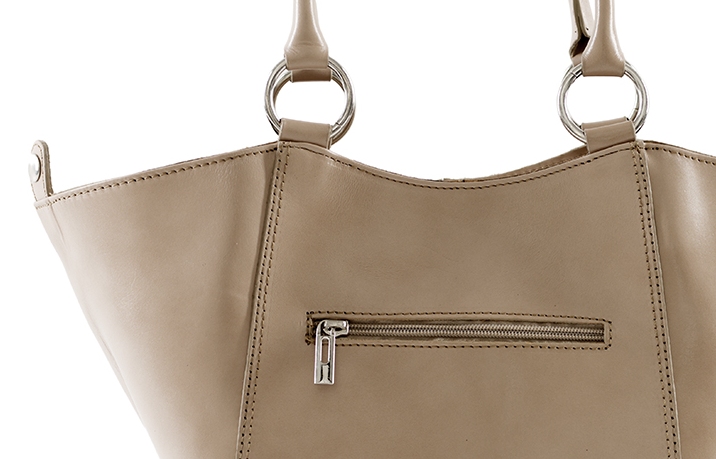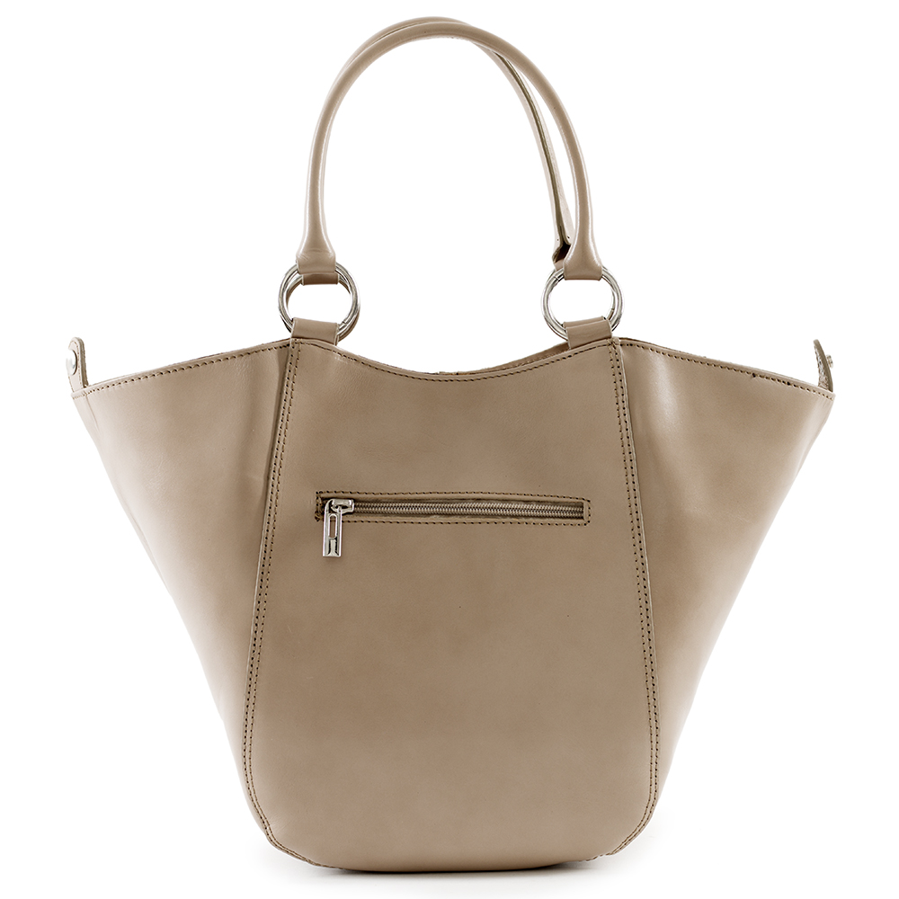 Włoska skórzana oryginalna torebka wykonana z wysokogatunkowej naturalnej gładkiej skóry licowej firmy Pelle. Zamykana z góry na suwak. Torebka jednokomorowa przedzieloną dużą kieszenią na suwak. Wewnątrz jedna kieszonka na zamek oraz jedna na telefon. Wnętrze wykończone trwałą podszewką. Dzięki zatrzaskowi w środku torebki możliwość jej rozłożenia i noszenia na dwa sposoby. Torebka od spodu usztywniona oraz podbita ćwiekami, co chroni ją przeciw uszkodzeniom. Elementy wykończenia w kolorze srebrnym. Dodatkowy pasek o długości 92 cm.