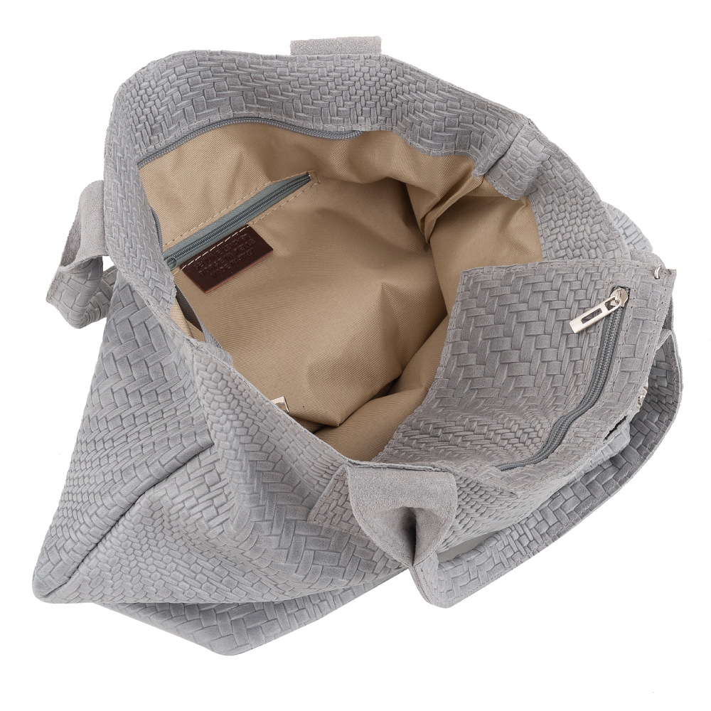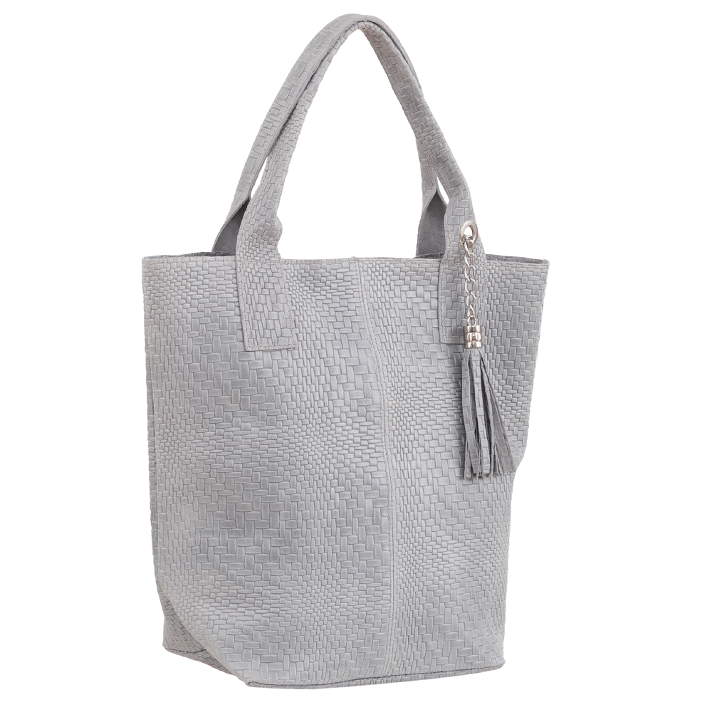 VERA PELLE Włoska skórzana torebka worek wykonana z naturalnej skóry z motywem plecionki. Bardzo oryginalny i praktyczny model. Zamykana z góry na zamek. W środku mocna, materiałowa podszewka. Kieszonka na suwak + saszetka na suwak w środku + miejsce na telefon. Elementy wykończenia w kolorze srebrnym. Modny pęk frędzli z przodu torebki. Swobodnie można nosić ją w dłoni, przedramieniu jak i na ramieniu.