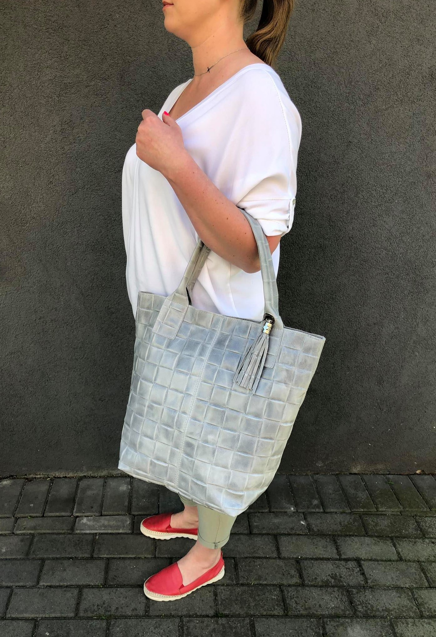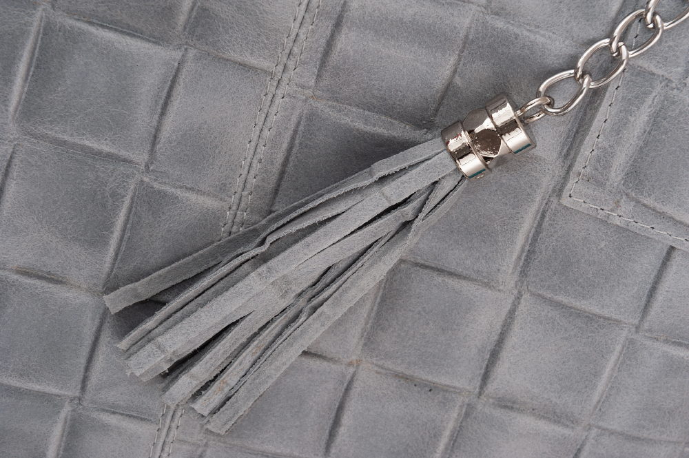 VERA PELLE Włoska skórzana torebka worek wykonana z naturalnej skóry z motywem plecionki. Bardzo oryginalny i praktyczny model. Zamykana z góry na zamek. W środku mocna, materiałowa podszewka. Kieszonka na suwak + saszetka na suwak w środku + miejsce na telefon. Elementy wykończenia w kolorze srebrnym. Modny pęk frędzli z przodu torebki. Swobodnie można nosić ją w dłoni, przedramieniu jak i na ramieniu.