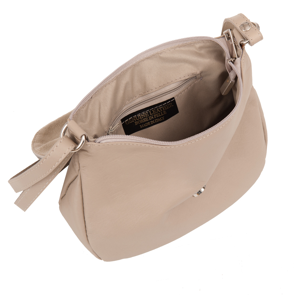 Włoska pojemna skórzana torebka / listonoszka wykonana z wysokogatunkowej naturalnej miękkiej skóry cielęcej. Zamykana na klapę z magnesem (w klapie kieszonka) + suwak na całej szerokości torebki. Torebka jednokomorowa, wewnątrz jedna kieszonka na zamek. Wnętrze wykończone trwałą, czarną podszewką. Długi, regulowany pasek umożliwia wygodne noszenie na ramieniu lub przez ramię. Dodatkowa kieszeń w klapie torebki na suwak.