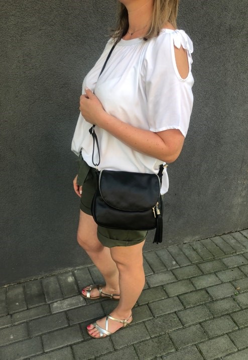 Włoska pojemna skórzana torebka / listonoszka wykonana z wysokogatunkowej naturalnej miękkiej skóry cielęcej. Zamykana na klapę z magnesem (w klapie kieszonka) + suwak na całej szerokości torebki. Torebka jednokomorowa, wewnątrz jedna kieszonka na zamek. Wnętrze wykończone trwałą, czarną podszewką. Długi, regulowany pasek umożliwia wygodne noszenie na ramieniu lub przez ramię. Dodatkowa kieszeń w klapie torebki na suwak.