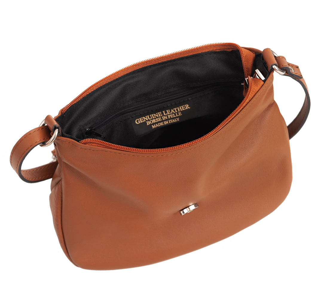 Vera Pelle - Włoska pojemna skórzana torebka / listonoszka wykonana z wysokogatunkowej naturalnej miękkiej skóry cielęcej. Zamykana na klapę z magnesem (w klapie kieszonka) + suwak na całej szerokości torebki. Torebka jednokomorowa, wewnątrz jedna kieszonka na zamek. Wnętrze wykończone trwałą, czarną podszewką. Długi, regulowany pasek umożliwia wygodne noszenie na ramieniu lub przez ramię. Dodatkowa kieszeń w klapie torebki na suwak.