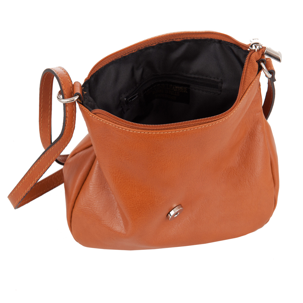Włoska pojemna skórzana torebka / listonoszka wykonana z wysokogatunkowej naturalnej miękkiej skóry cielęcej. Zamykana na klapę z magnesem (w klapie kieszonka) + suwak na całej szerokości torebki. Torebka jednokomorowa, wewnątrz jedna kieszonka na zamek. Wnętrze wykończone trwałą, czarną podszewką. Długi, regulowany pasek umożliwia wygodne noszenie na ramieniu lub przez ramię. Dodatkowa kieszeń w klapie torebki na suwak.