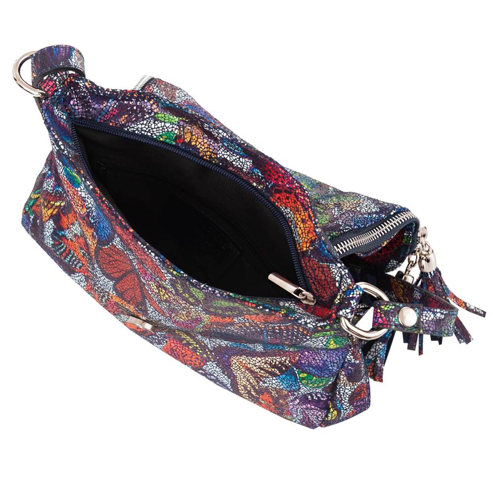 Włoska pojemna skórzana torebka / listonoszka wykonana z wysokogatunkowej naturalnej miękkiej skóry. Zamykana na klapę z magnesem (w klapie kieszonka) + suwak na całej szerokości torebki. Torebka jednokomorowa, wewnątrz jedna kieszonka na zamek. Wnętrze wykończone trwałą, materiałową podszewką. Długi, regulowany pasek umożliwia wygodne noszenie na ramieniu lub przez ramię. Dodatkowa kieszeń w klapie torebki na suwak + kieszonka z tyłu torebki na zamek.