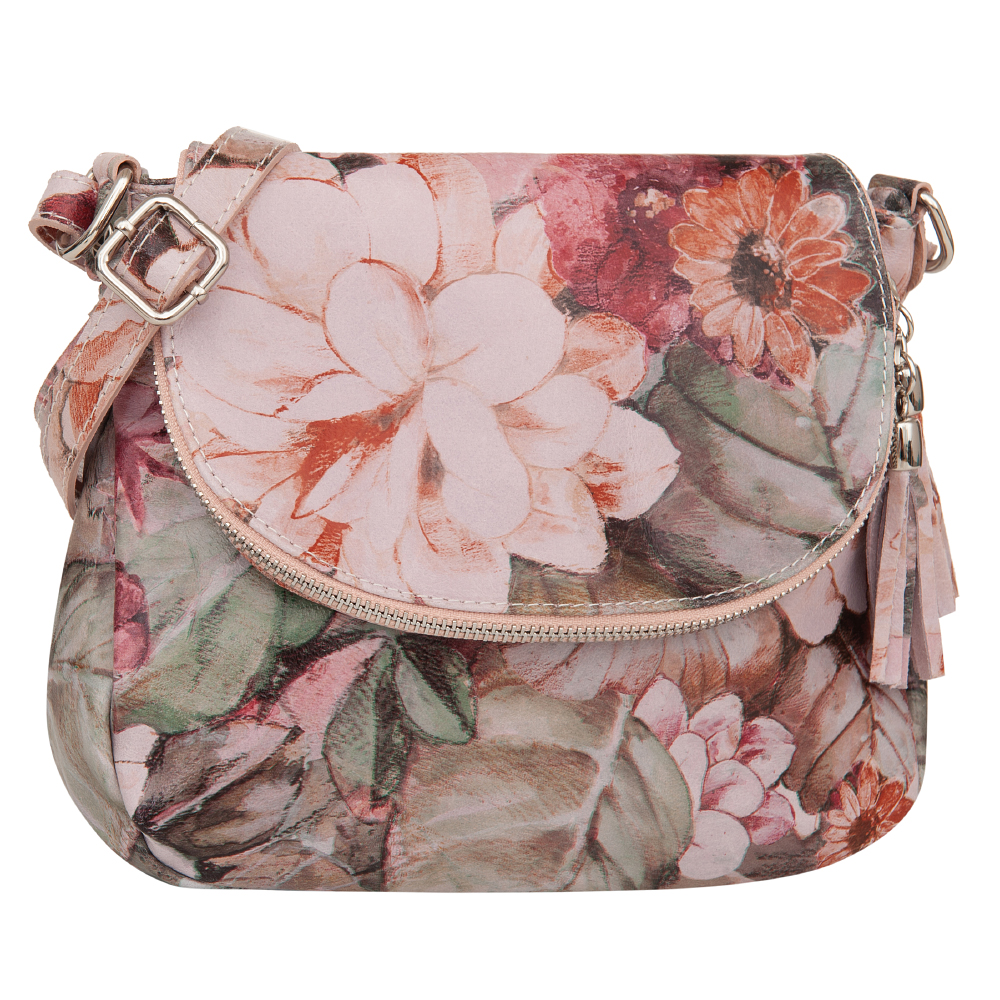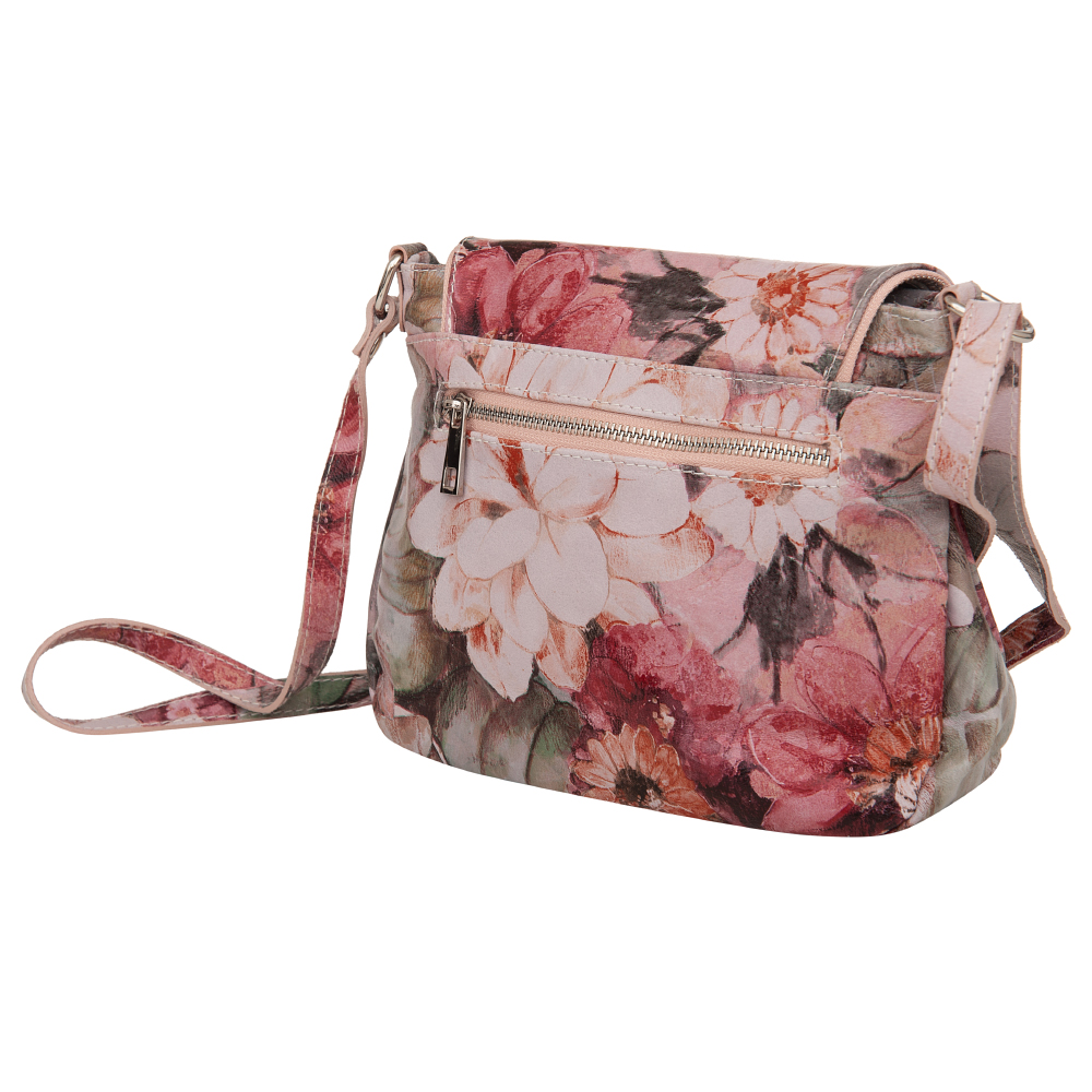 Włoska pojemna skórzana torebka / listonoszka wykonana z wysokogatunkowej naturalnej skóry z motywem kolorowych kwiatów. Zamykana na klapę z magnesem (w klapie kieszonka) + suwak na całej szerokości torebki. Torebka jednokomorowa, wewnątrz jedna kieszonka na zamek. Wnętrze wykończone trwałą, czarną podszewką. Długi, regulowany pasek umożliwia wygodne noszenie na ramieniu lub przez ramię. Dodatkowa kieszeń w klapie torebki na suwak.