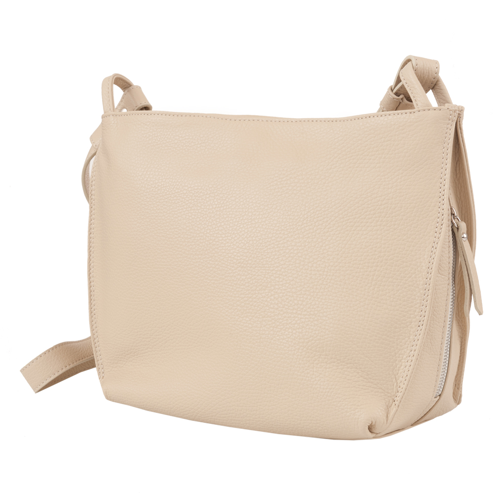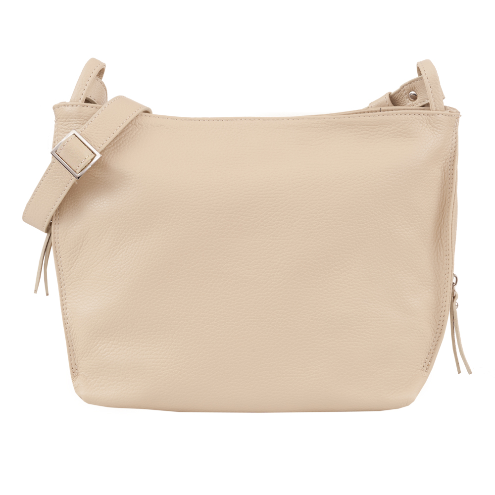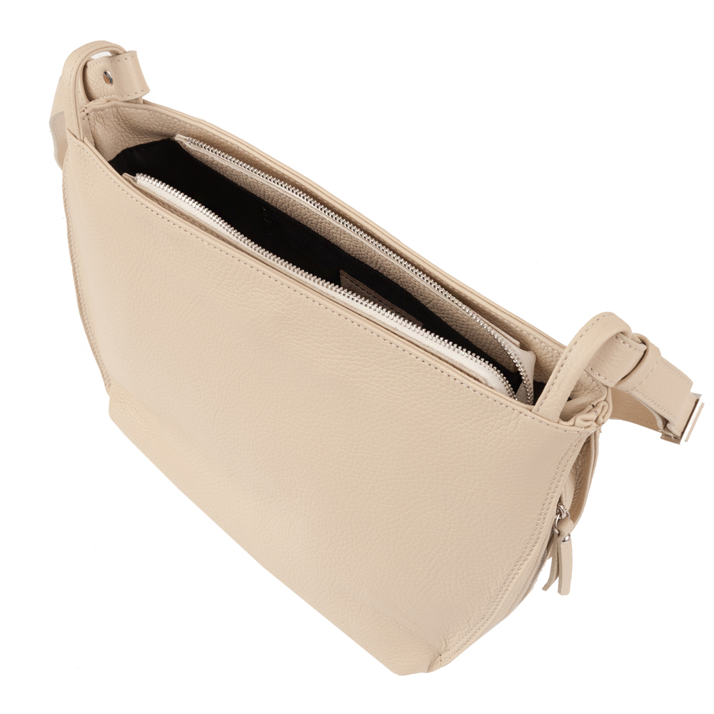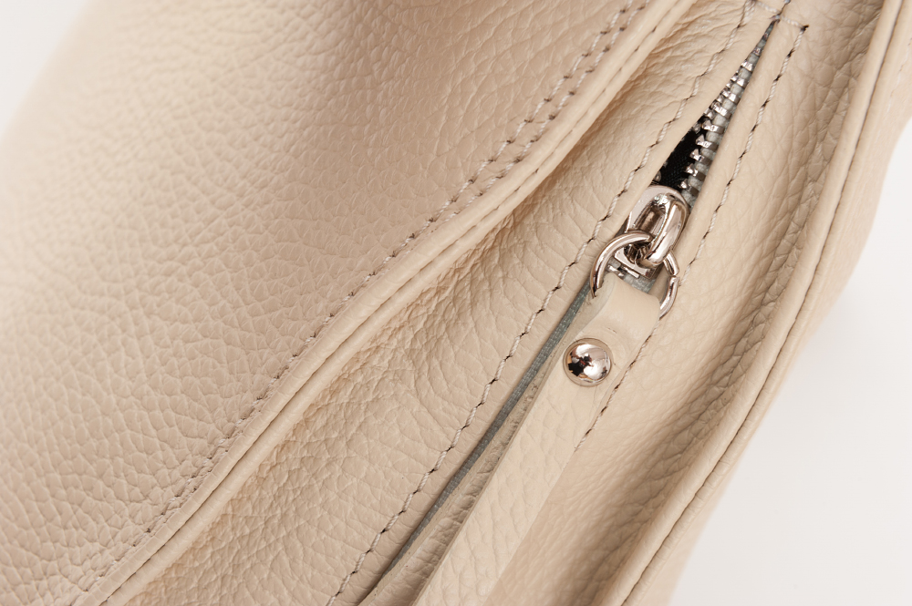 Vera Pelle - Włoska pojemna miękka skórzana torebka worek wykonana z wysokogatunkowej naturalnej skóry dolaro. Zamykana od góry na zamek na całej szerokości. Torebka trzykomorowa, na środku duża komora z kieszonką na zamek + kieszonka na telefon + kieszeń na klucze, drobiazgi. Wnętrze wykończone trwałą, materiałową podszewką. Boczne komory zamykane na magnes. Kieszonki po obu bokach torebki. Miękkie ucho umożliwia wygodne noszenie na ramieniu lub przez ramię jako listonoszka. Metalowe elementy wykończenia w kolorze srebrnym.