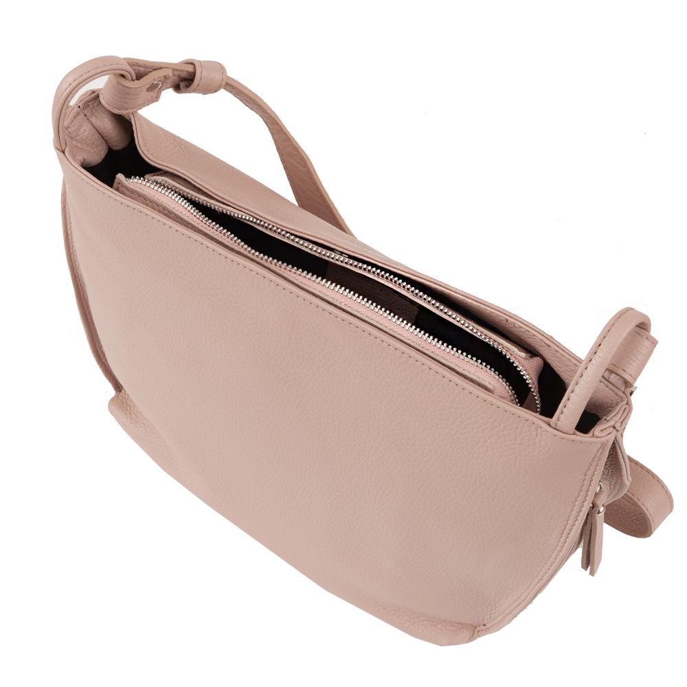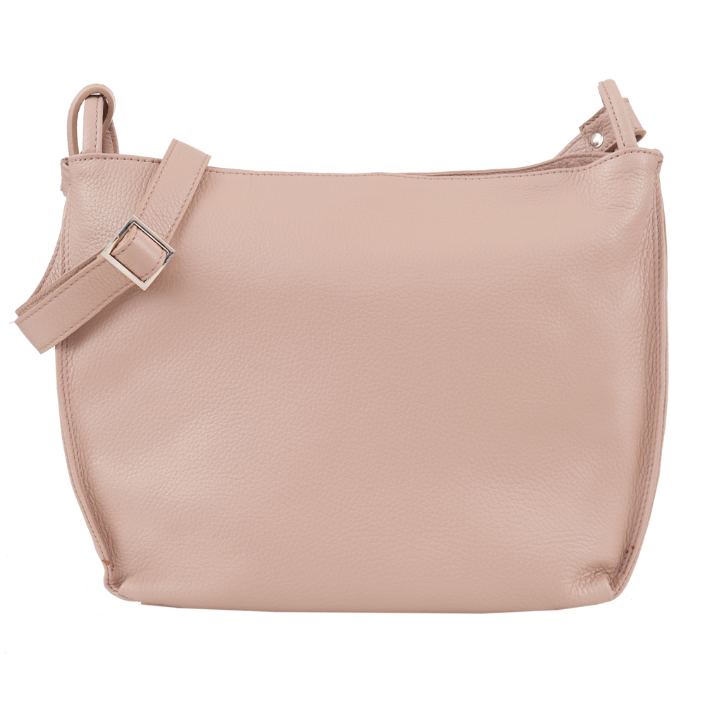 Vera Pelle - Włoska pojemna miękka skórzana torebka worek wykonana z wysokogatunkowej naturalnej skóry dolaro. Zamykana od góry na zamek na całej szerokości. Torebka trzykomorowa, na środku duża komora z kieszonką na zamek + kieszonka na telefon + kieszeń na klucze, drobiazgi. Wnętrze wykończone trwałą, materiałową podszewką. Boczne komory zamykane na magnes. Kieszonki po obu bokach torebki. Miękkie ucho umożliwia wygodne noszenie na ramieniu lub przez ramię jako listonoszka. Metalowe elementy wykończenia w kolorze srebrnym.