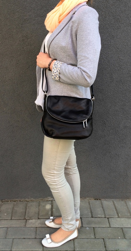 Włoska duża skórzana torebka / listonoszka wykonana z wysokogatunkowej naturalnej gładkiej skóry cielęcej. Zamykana na dużą klapę na magnes (w klapie duża kieszonka) + suwak na całej szerokości torebki. Torebka jednokomorowa, wewnątrz jedna kieszonka na zamek + miejsce na telefon. Wnętrze wykończone trwałą, ciemną podszewką. Długi, regulowany pasek umożliwia wygodne noszenie na ramieniu lub przez ramię. Dodatkowa kieszeń w klapie torebki na suwak.
