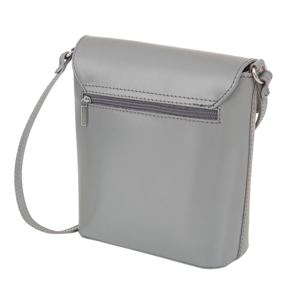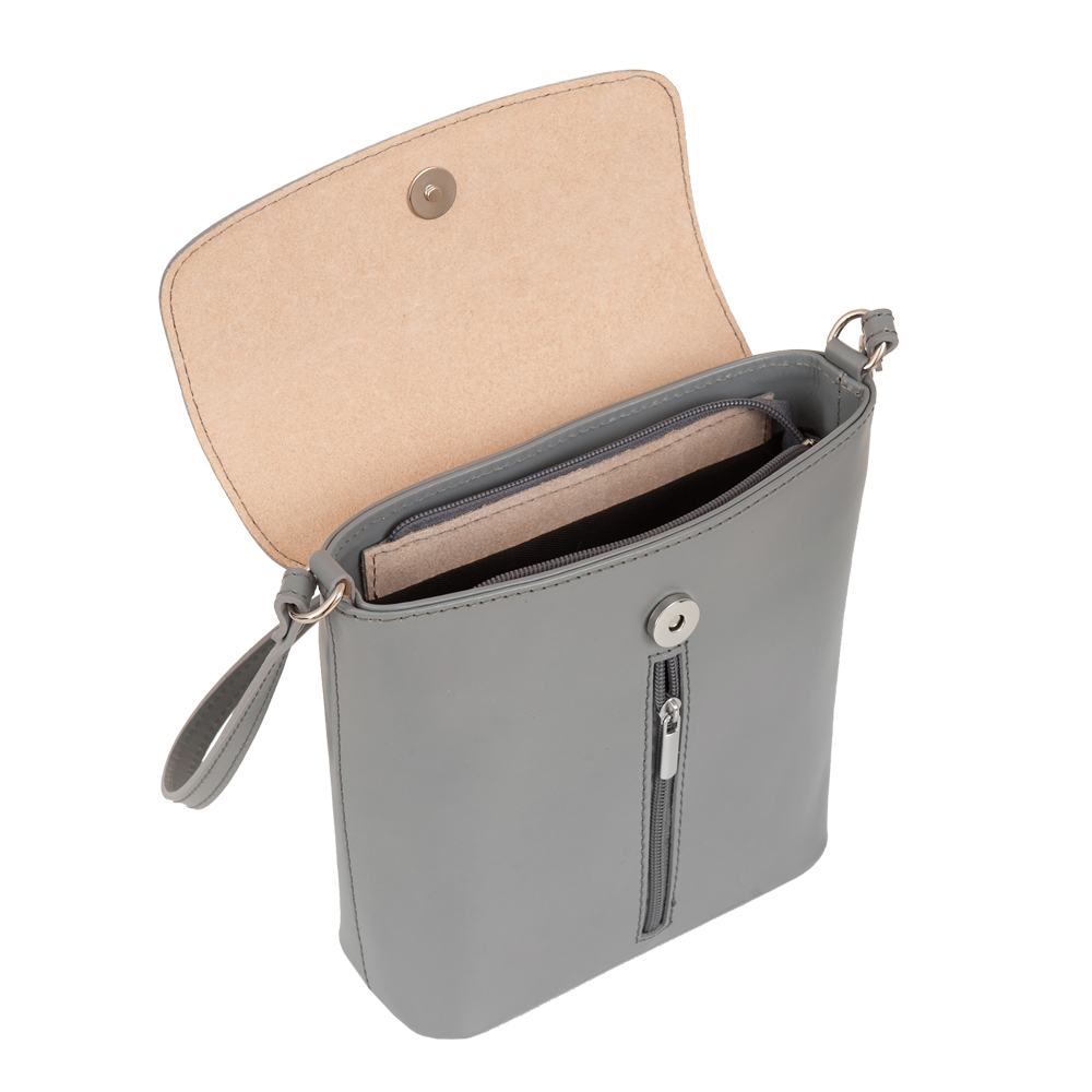 Włoska skórzana listonoszka wykonana z wysokogatunkowej naturalnej gładkiej skóry licowej firmy Vera Pelle. Zamykana z góry na suwak + klapka na magnes. Torebka jednokomorowa, wewnątrz jedna kieszonka na zamek + pionowa kieszonka z przodu torebki na suwak. Wnętrze wykończone trwałą , ciemną podszewką. Z przodu i z tyłu kieszonka na suwak. Długi, regulowany pasek umożliwia wygodne noszenie na ramieniu. Okucia w kolorze srebrnym.