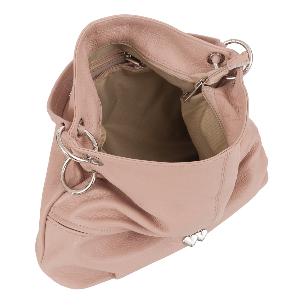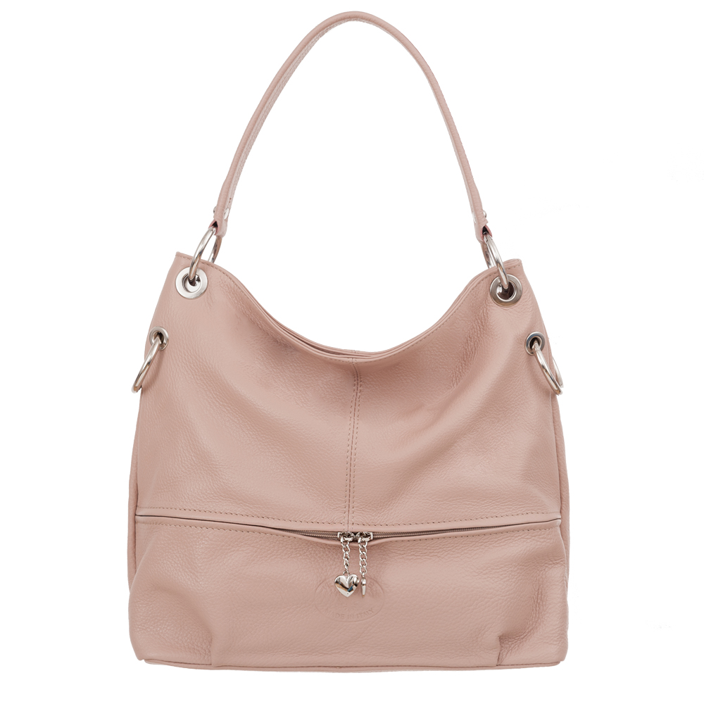 Włoska skórzana torebka wykonana z wysokogatunkowej naturalnej gładkiej skóry cielęcej. Zamykana z góry na suwak. Torebka dwukomorowa przedzielona dużą kieszenią na suwak. Wewnątrz jedna kieszonka na zamek oraz jedna na telefon. Dodatkowo z przodu torebki szeroka kieszeń na suwaki. Wnętrze wykończone trwałą podszewką dopasowną pod kolor skóry. Dodatkowy pasek z możliwością regulacji długości od 50 cm do 100 cm.
