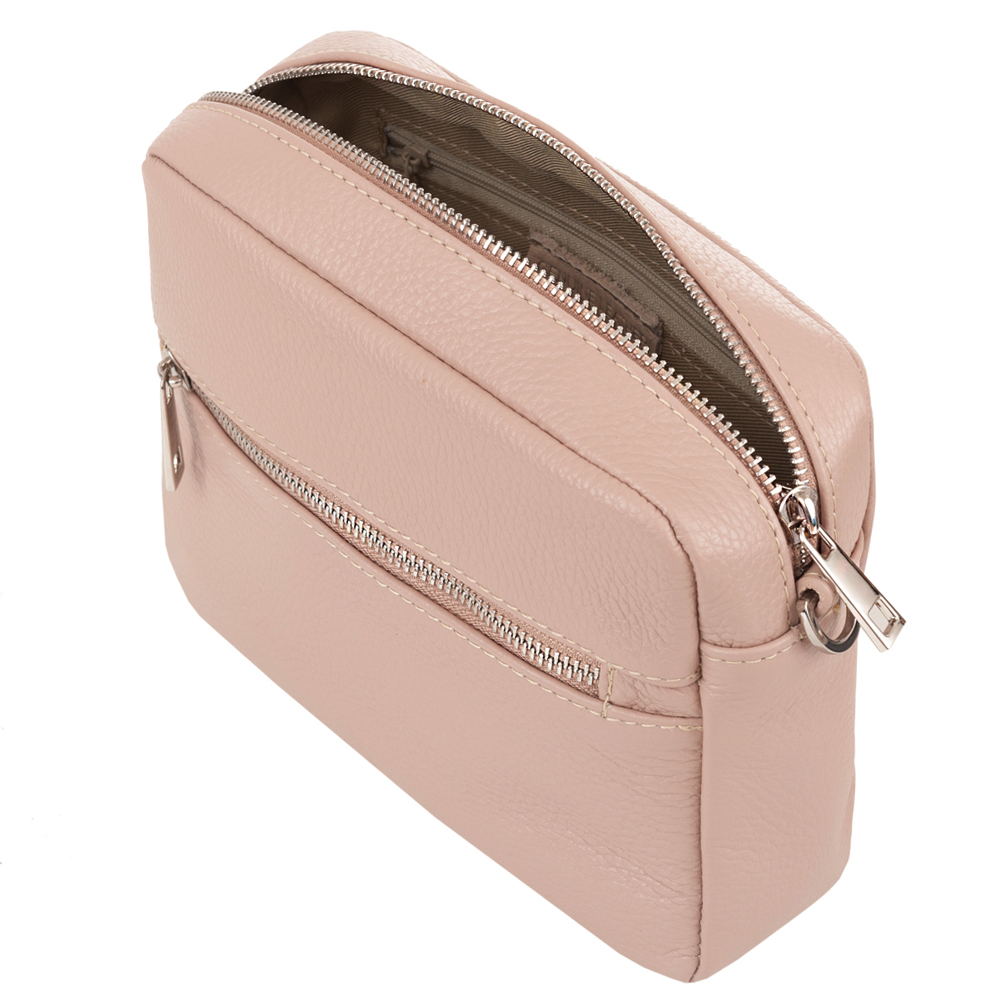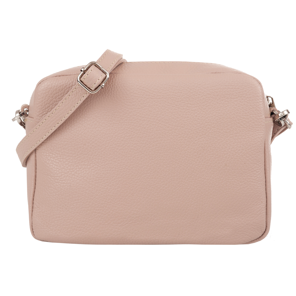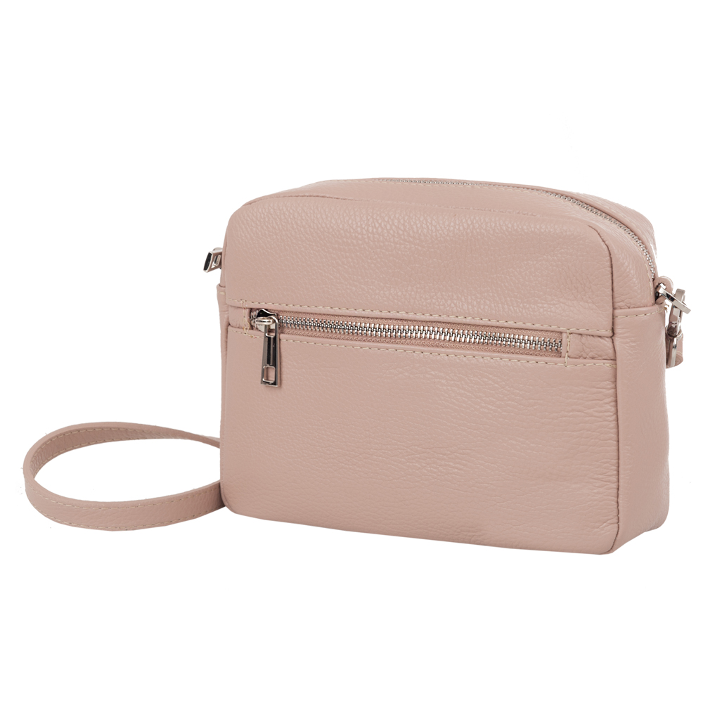 Włoska skórzana torebka listonoszka wykonana z wysokogatunkowej naturalnej skóry dolaro firmy VERA PELLE. Zamykana z góry na zamek. Torebka jednokomorowa, wewnątrz jedna kieszonka na zamek + kieszonka na telefon. Elementy wykończenia w kolorze srebrnym. Skórzany pasek z możliwością regulacji długości do 140 cm oraz całkowitego odpięcia, dzięki czemu torebkę można nosić jako elegancką kopertówkę. Z tyłu torebki kieszonka na zamek.