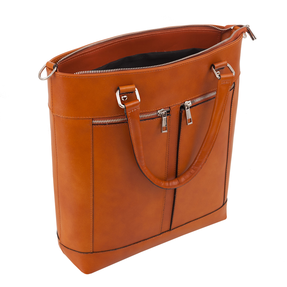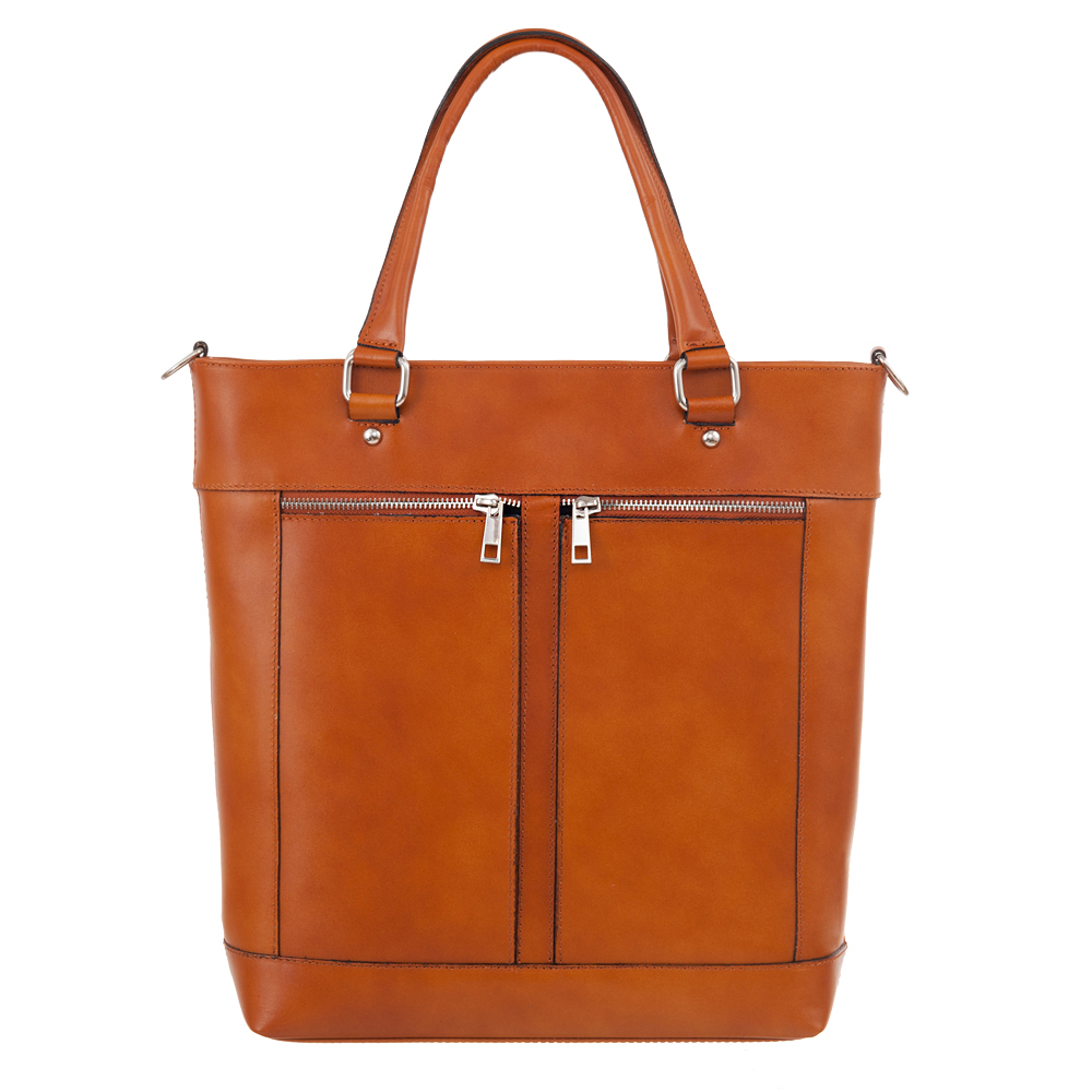 Vera Pelle - Włoska klasyczna A4 skórzana torebka wykonana z wysokogatunkowej naturalnej gładkiej skóry licowej. Zamykana z góry na suwak na całej szerokości. Torebka jednokomorowa. Wewnątrz kieszeń na zamek oraz jedna na telefon. Wnętrze wykończone trwałą, czarną podszewką. Dodatkowo z przodu torebki 2 kieszonki na suwak. Torebka od spodu usztywniona. Elementy wykończenia w kolorze srebrnym. Dodatkowy długi pasek na ramię o długości 95 cm.