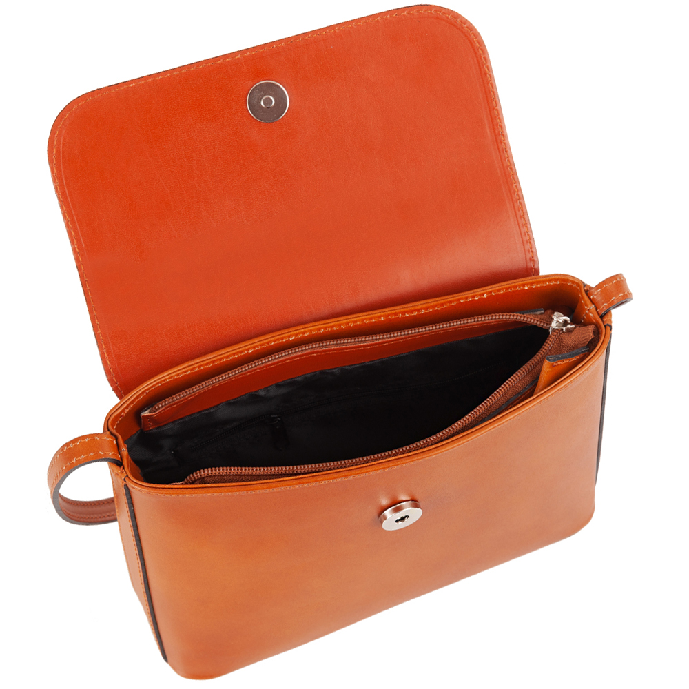 Włoska skórzana listonoszka wykonana z wysokogatunkowej naturalnej gładkiej skóry licowej firmy Pelle. Zamykana z góry na suwak + klapa na magnes. Spód torebki usztywniony. Torebka jednokomorowa, wewnątrz jedna kieszonka na zamek oraz jedna na telefon. Wnętrze wykończone trwałą podszewką. Z tyłu kieszonka na suwak. Długi, regulowany pasek umożliwia wygodne noszenie na ramieniu.