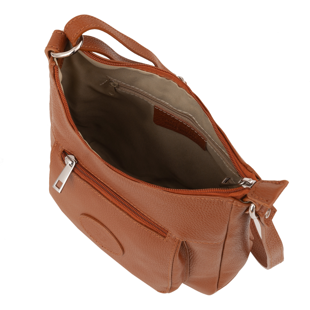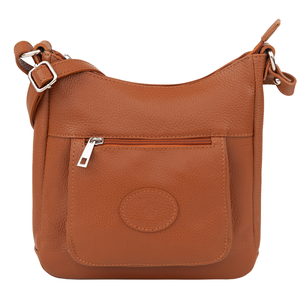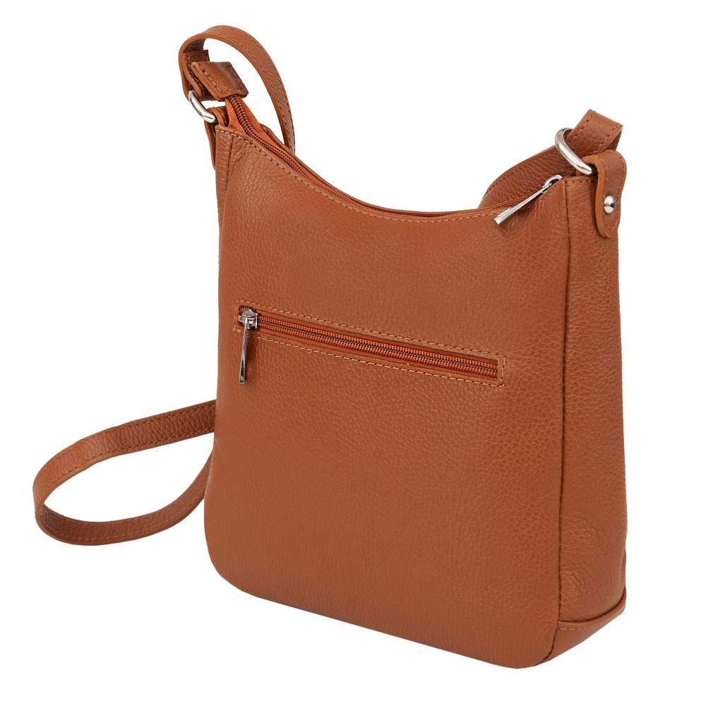 Vera Pelle - Włoska skórzana pojemna listonoszka wykonana z wysokogatunkowej skóry naturalnej. Zamykana szczelnie od góry na zamek na całej szerokości. Torebka jednokomorowa, wewnątrz jedna kieszonka na zamek + dwie wsuwne kieszonki m.in. na telefon. Wnętrze wykończone trwałą , materiałową podszewką. Długi, regulowany pasek umożliwia wygodne noszenie na ramieniu lub przez ramię jako listonoszka. Dodatkowa pojemna kieszeń z tyłu na zamek + kieszonka z przodu. Elementy wykończenia w kolorze srebrnym. Dno lekko usztywnione.