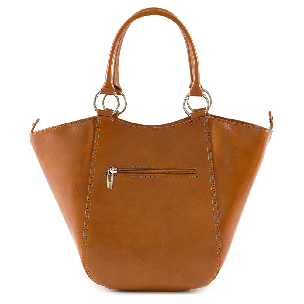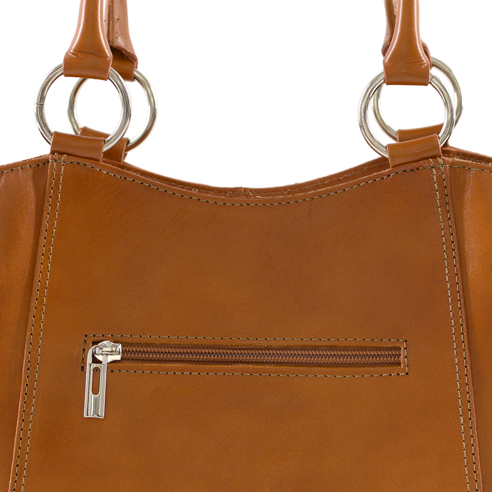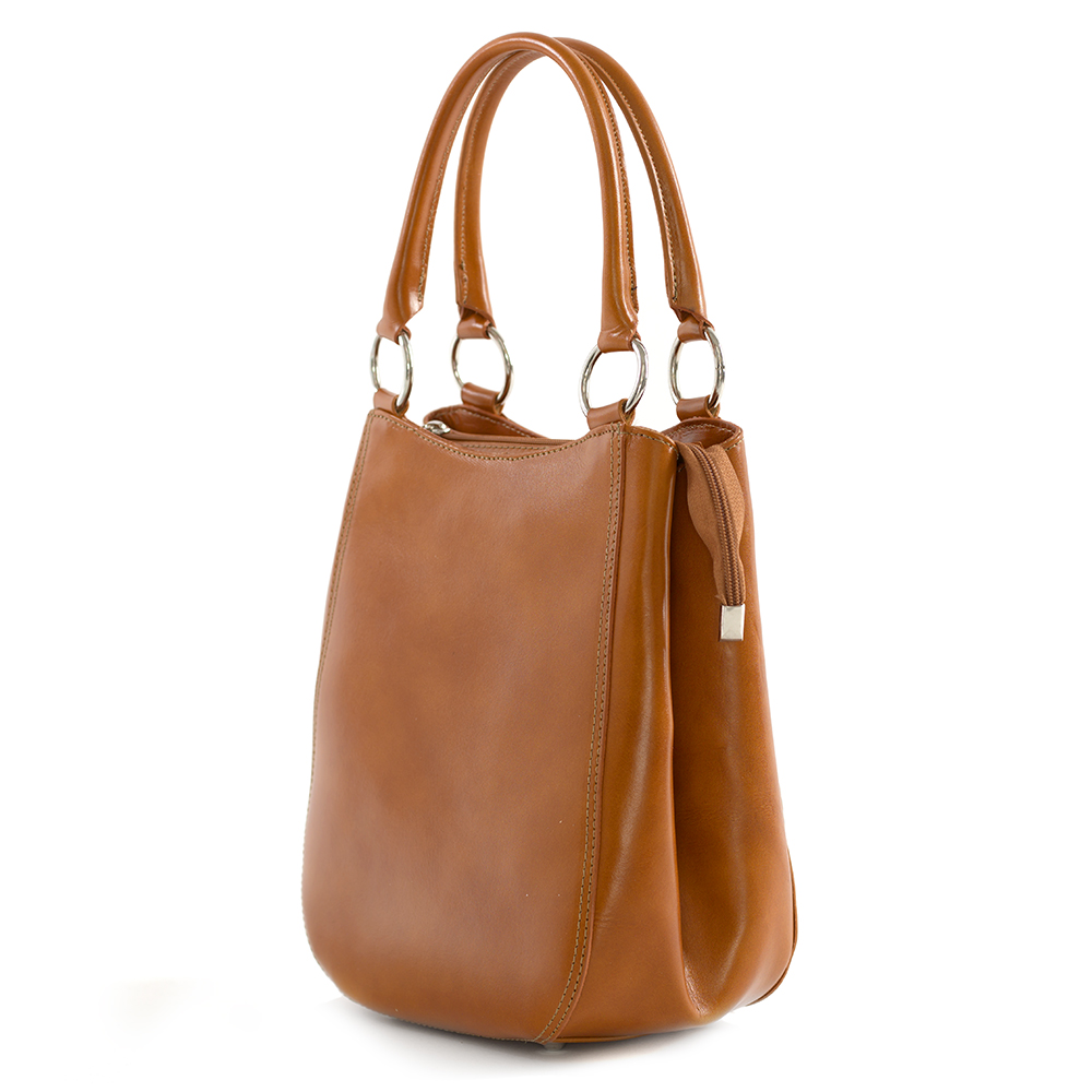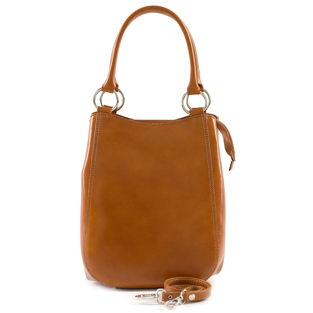 Włoska skórzana oryginalna torebka wykonana z wysokogatunkowej naturalnej gładkiej skóry licowej firmy Pelle. Zamykana z góry na suwak. Torebka jednokomorowa przedzieloną dużą kieszenią na suwak. Wewnątrz jedna kieszonka na zamek oraz jedna na telefon. Wnętrze wykończone trwałą podszewką. Dzięki zatrzaskowi w środku torebki możliwość jej rozłożenia i noszenia na dwa sposoby. Torebka od spodu usztywniona oraz podbita ćwiekami, co chroni ją przeciw uszkodzeniom. Elementy wykończenia w kolorze srebrnym. Dodatkowy pasek o długości 92 cm.