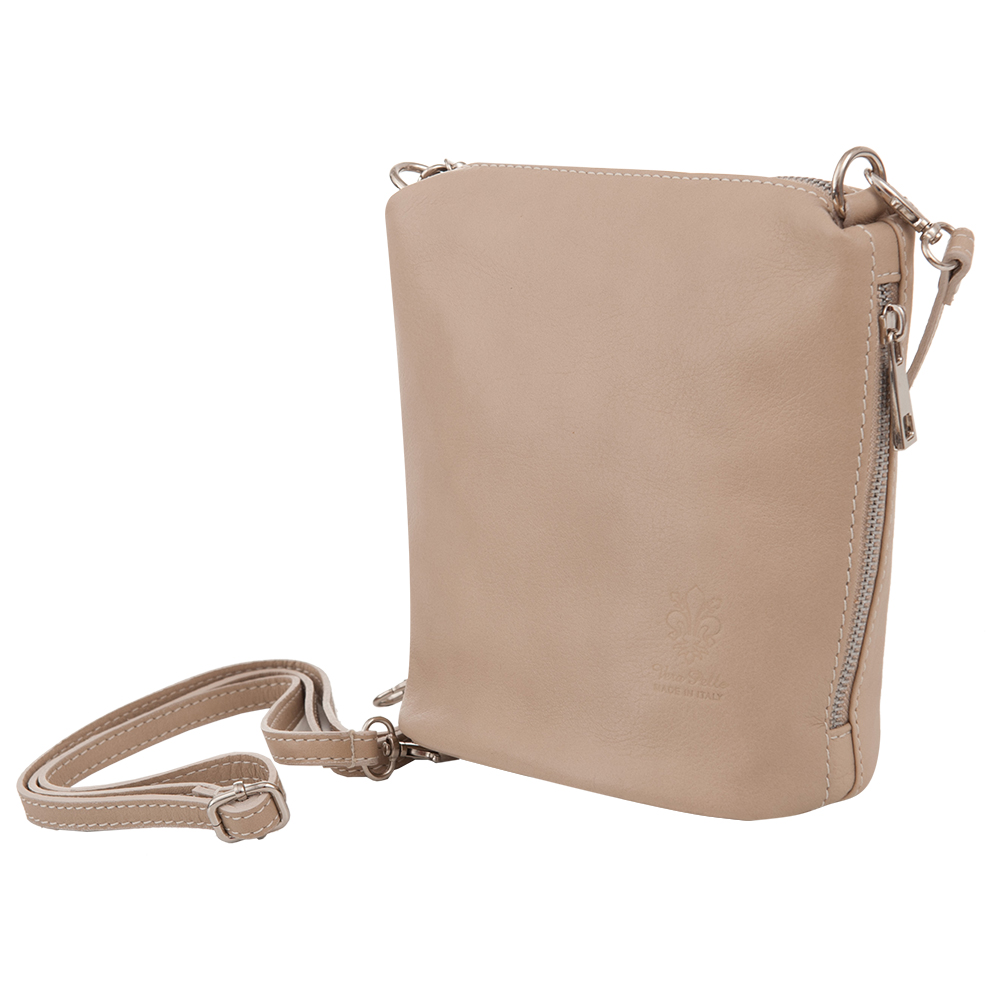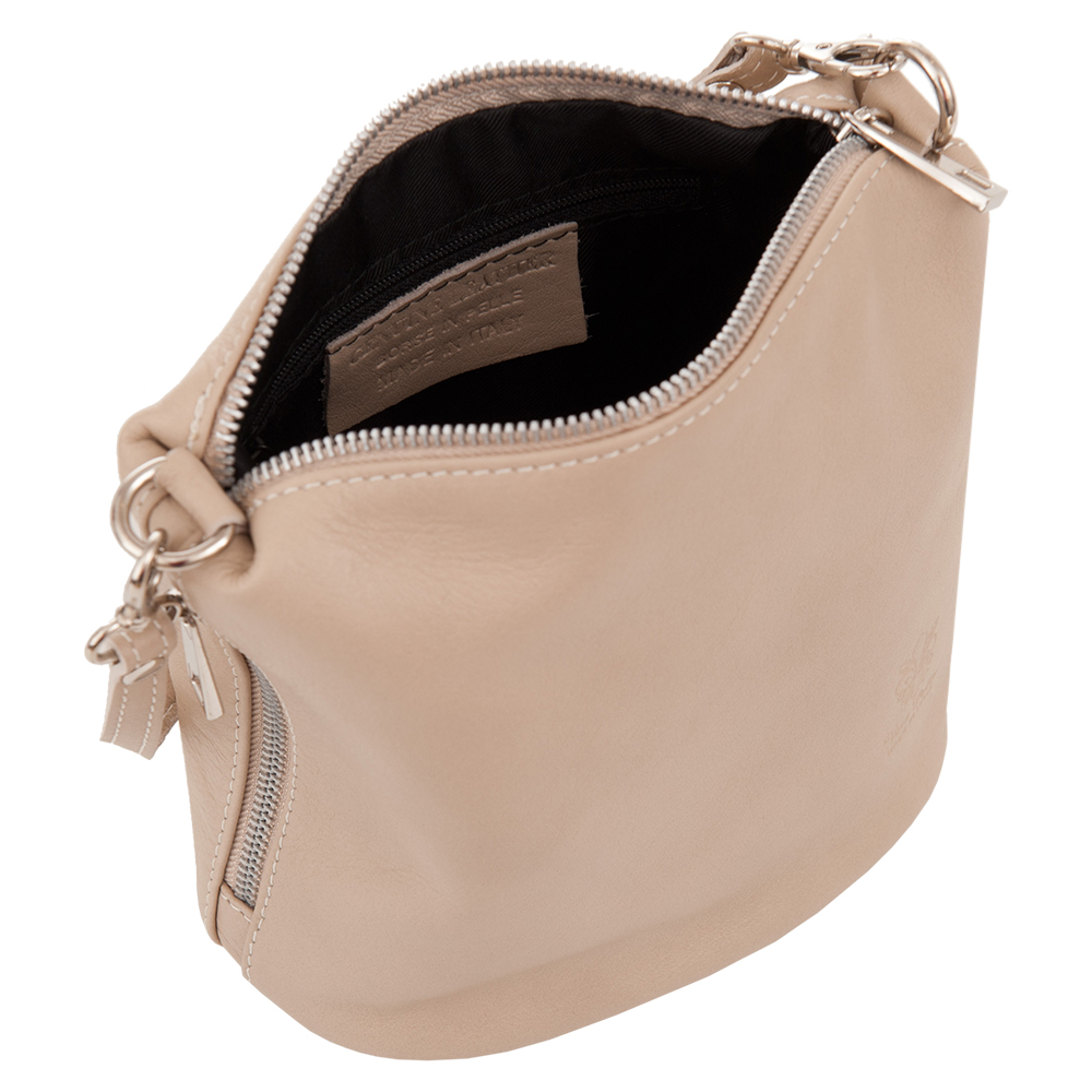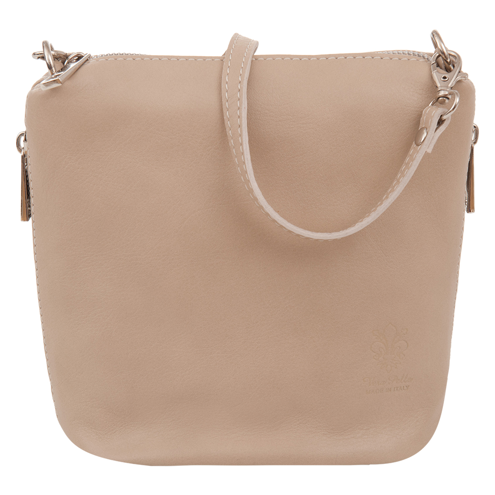Vera Pelle - włoska modna, skórzana torebka wykonana z wysokogatunkowej mięciutkiej naturalnej skóry cielęcej. Zamykana z góry na suwak. Spód torebki lekko usztywniony. Torebka jednokomorowa, wewnątrz jedna kieszonka na zamek + kieszeń na telefon. Wnętrze wykończone trwałą podszewką. Po bokach kieszonki pionowe na suwak. Pasek o długości 130 cm umożliwia wygodne noszenie na ramieniu lub przez ramię. W komplecie krótki pasek do noszenia w ręce o długości 37 cm. Oba paski można odpiąć od torebki.