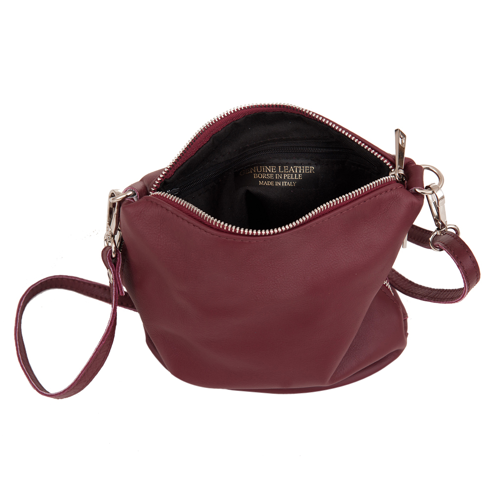 Vera Pelle - włoska modna, skórzana torebka wykonana z wysokogatunkowej mięciutkiej naturalnej skóry cielęcej. Zamykana z góry na suwak. Spód torebki lekko usztywniony. Torebka jednokomorowa, wewnątrz jedna kieszonka na zamek + kieszeń na telefon. Wnętrze wykończone trwałą podszewką. Po bokach kieszonki pionowe na suwak. Pasek o długości 130 cm umożliwia wygodne noszenie na ramieniu lub przez ramię. W komplecie krótki pasek do noszenia w ręce o długości 37 cm. Oba paski można odpiąć od torebki.