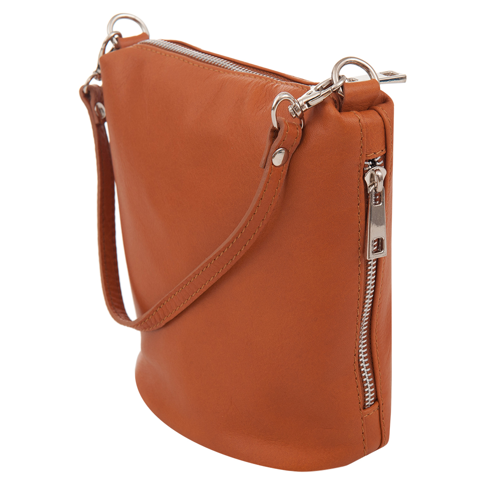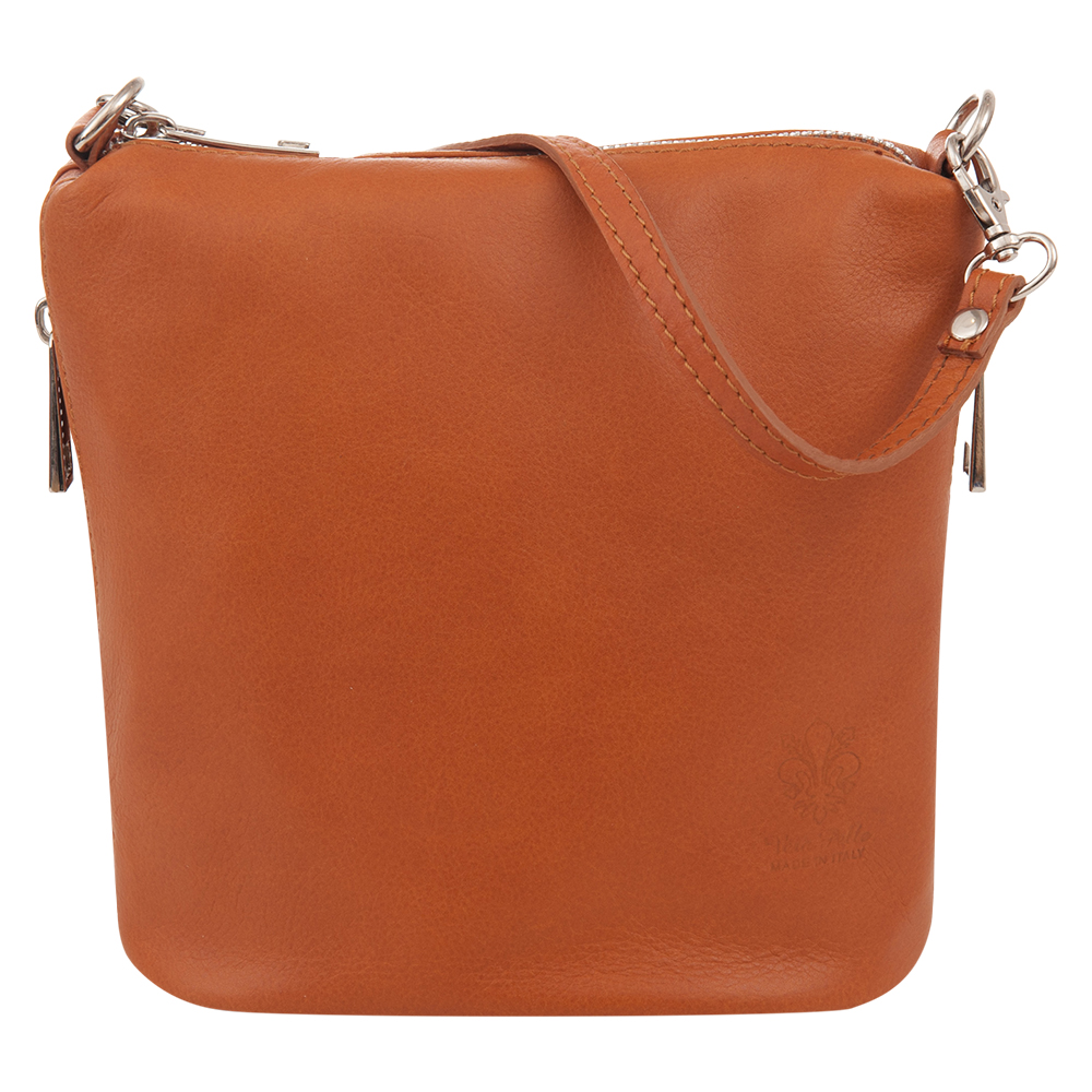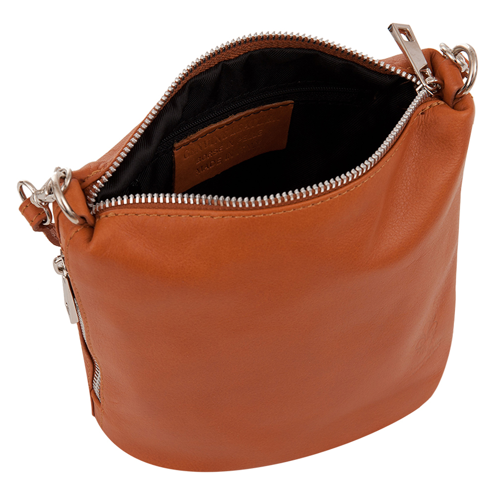Vera Pelle - włoska modna, skórzana torebka wykonana z wysokogatunkowej mięciutkiej naturalnej skóry cielęcej. Zamykana z góry na suwak. Spód torebki lekko usztywniony. Torebka jednokomorowa, wewnątrz jedna kieszonka na zamek + kieszeń na telefon. Wnętrze wykończone trwałą podszewką. Po bokach kieszonki pionowe na suwak. Pasek o długości 130 cm umożliwia wygodne noszenie na ramieniu lub przez ramię. W komplecie krótki pasek do noszenia w ręce o długości 37 cm. Oba paski można odpiąć od torebki.