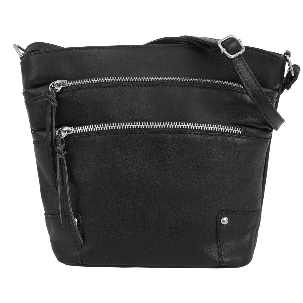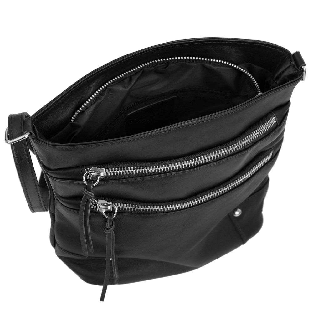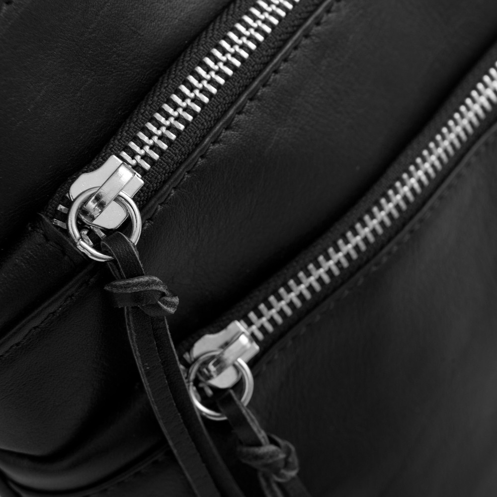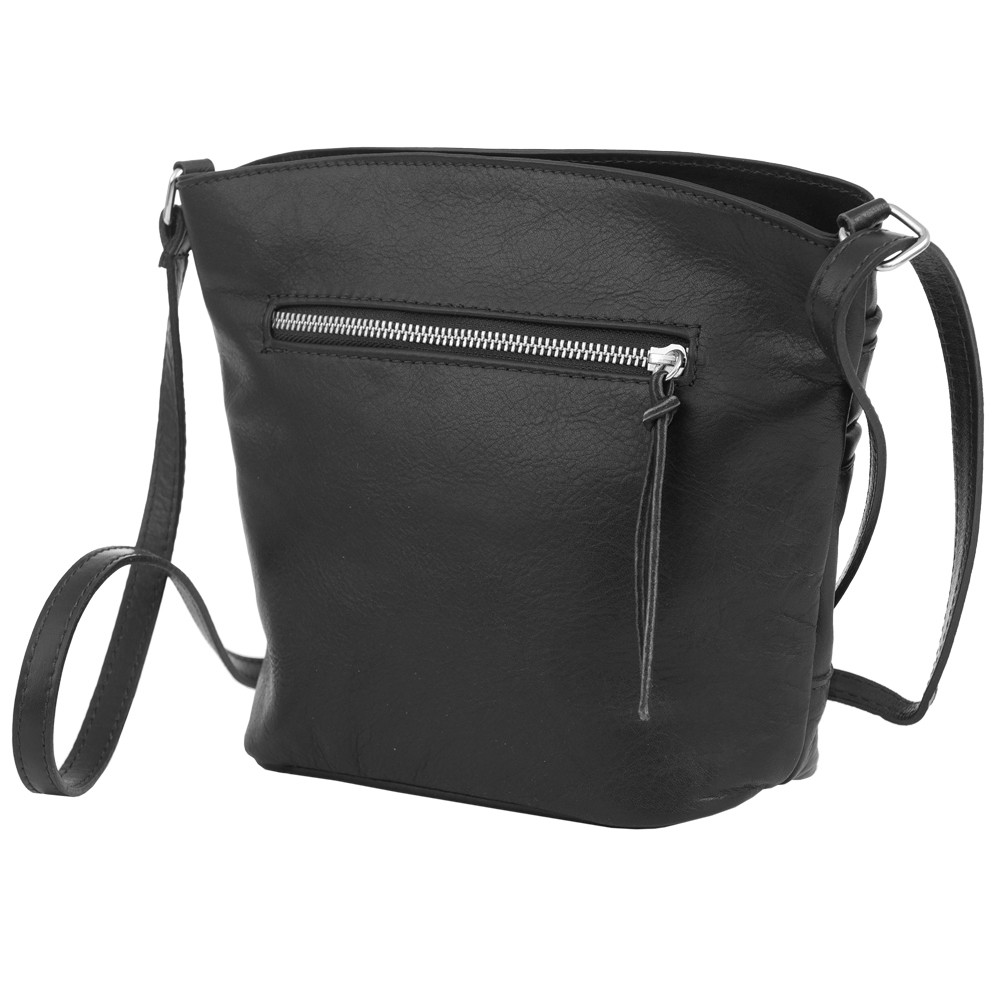 Vera Pelle - włoska modna, skórzana torebka wykonana z wysokogatunkowej mięciutkiej naturalnej skóry cielęcej. Zamykana z góry na suwak. Spód torebki lekko usztywniony. Torebka jednokomorowa, wewnątrz jedna kieszonka na zamek. Wnętrze wykończone trwałą, czarną podszewką. Z przodu dwie kieszonki na suwak + z tyłu dodatkowa kieszeń na zamek. Regulowany pasek o długości do 124 cm umożliwia wygodne noszenie na ramieniu lub przez ramię. Elementy wykończenia w kolorze srebrnym.