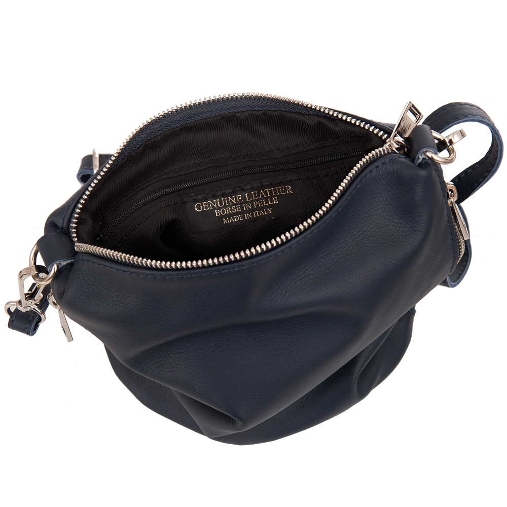 Vera Pelle - włoska pojemna, modna skórzana torebka wykonana z wysokogatunkowej mięciutkiej naturalnej skóry cielęcej. Zamykana z góry na suwak. Spód torebki lekko usztywniony. Torebka jednokomorowa, wewnątrz jedna kieszonka na zamek + kieszeń na telefon. Wnętrze wykończone trwałą podszewką. Po bokach kieszonki pionowe na suwak. Pasek o długości do 122 cm umożliwia wygodne noszenie na ramieniu lub przez ramię. W komplecie krótki pasek do noszenia w ręce o długości 36 cm. Oba paski można odpiąć od torebki.