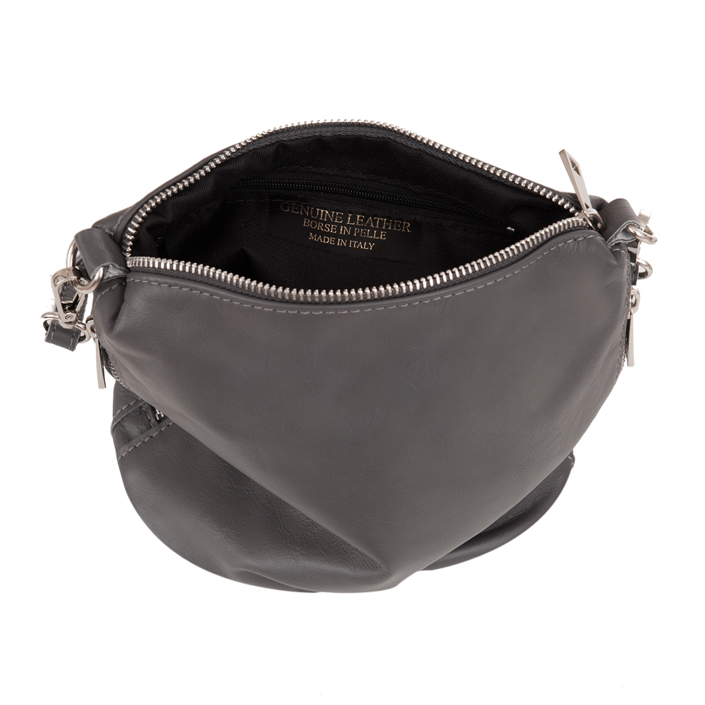 Vera Pelle - włoska pojemna, modna skórzana torebka wykonana z wysokogatunkowej mięciutkiej naturalnej skóry cielęcej. Zamykana z góry na suwak. Spód torebki lekko usztywniony. Torebka jednokomorowa, wewnątrz jedna kieszonka na zamek + kieszeń na telefon. Wnętrze wykończone trwałą podszewką. Po bokach kieszonki pionowe na suwak. Pasek o długości do 122 cm umożliwia wygodne noszenie na ramieniu lub przez ramię. W komplecie krótki pasek do noszenia w ręce o długości 36 cm. Oba paski można odpiąć od torebki.