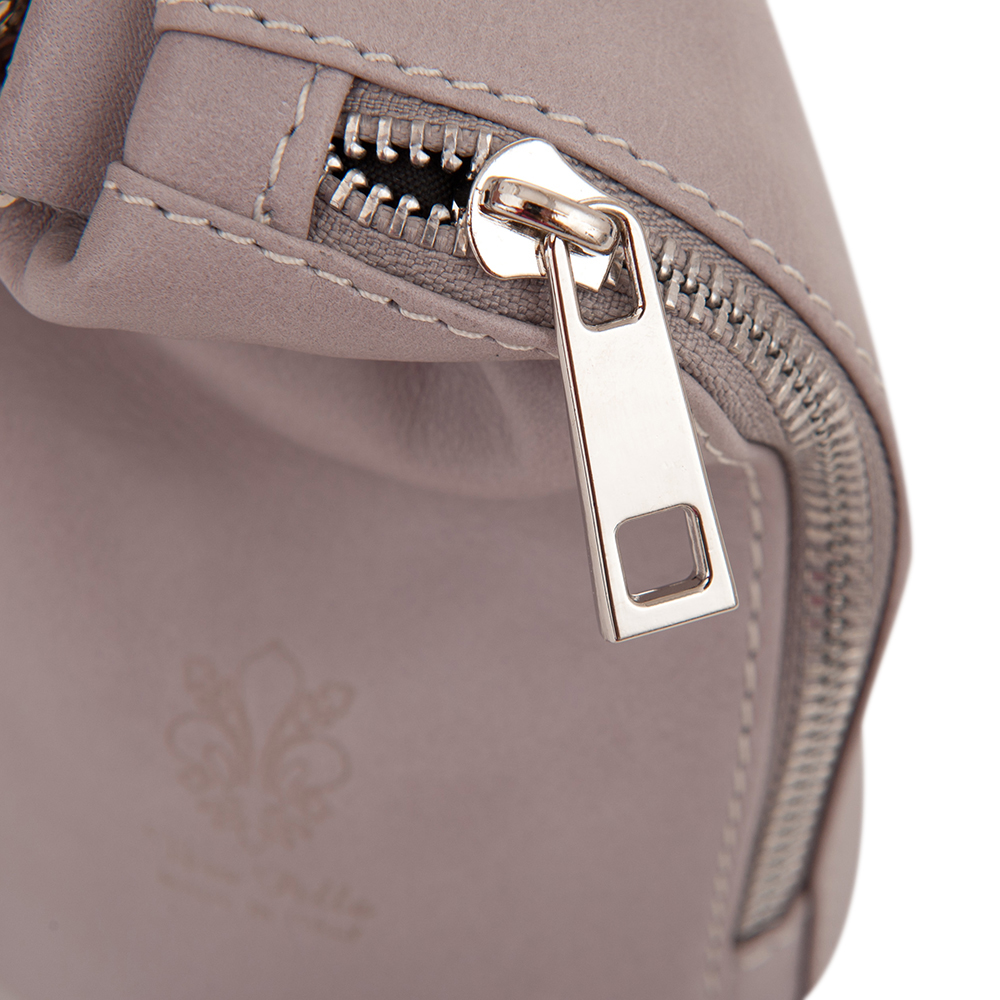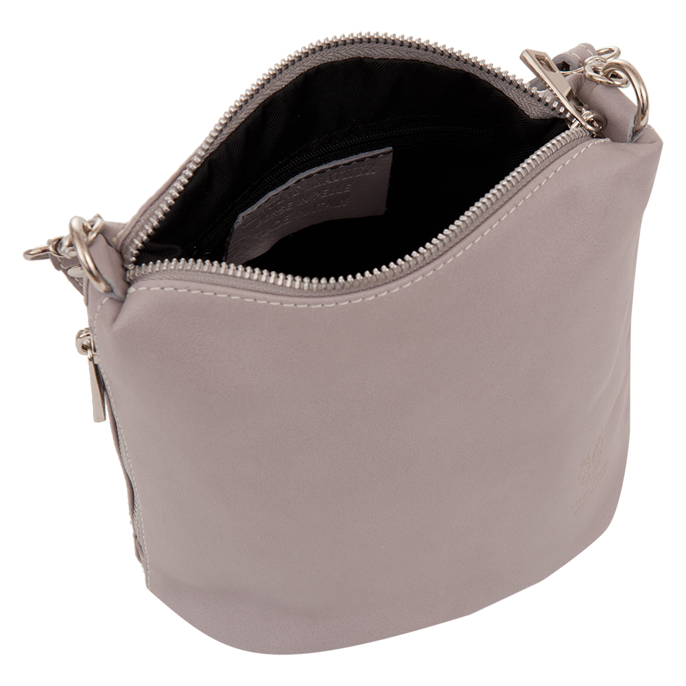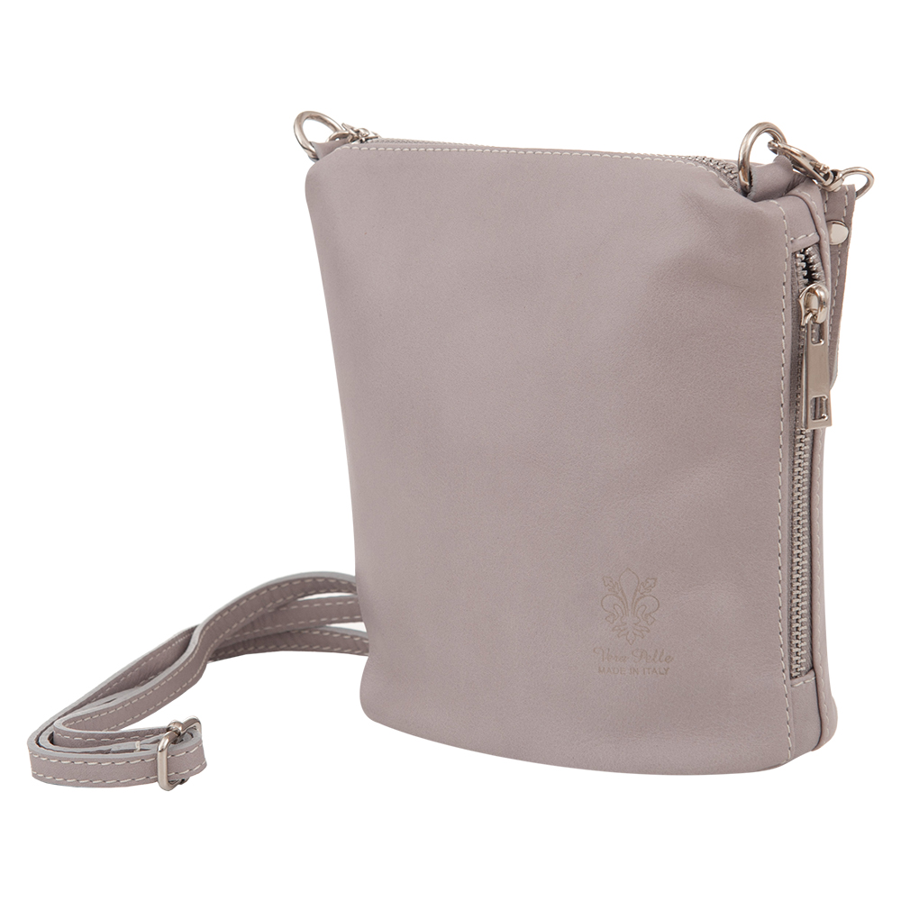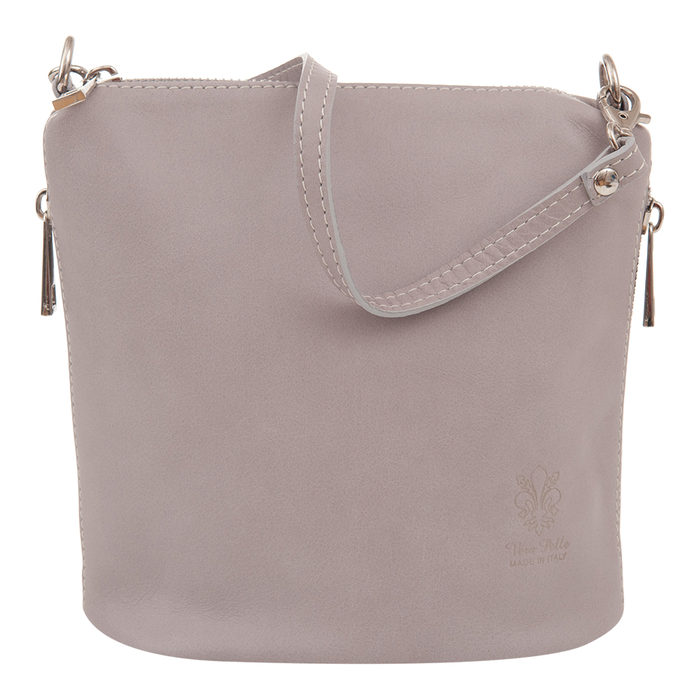 Vera Pelle - włoska modna, skórzana torebka wykonana z wysokogatunkowej mięciutkiej naturalnej skóry cielęcej. Zamykana z góry na suwak. Spód torebki lekko usztywniony. Torebka jednokomorowa, wewnątrz jedna kieszonka na zamek + kieszeń na telefon. Wnętrze wykończone trwałą podszewką. Po bokach kieszonki pionowe na suwak. Pasek o długości 130 cm umożliwia wygodne noszenie na ramieniu lub przez ramię. W komplecie krótki pasek do noszenia w ręce o długości 37 cm. Oba paski można odpiąć od torebki.