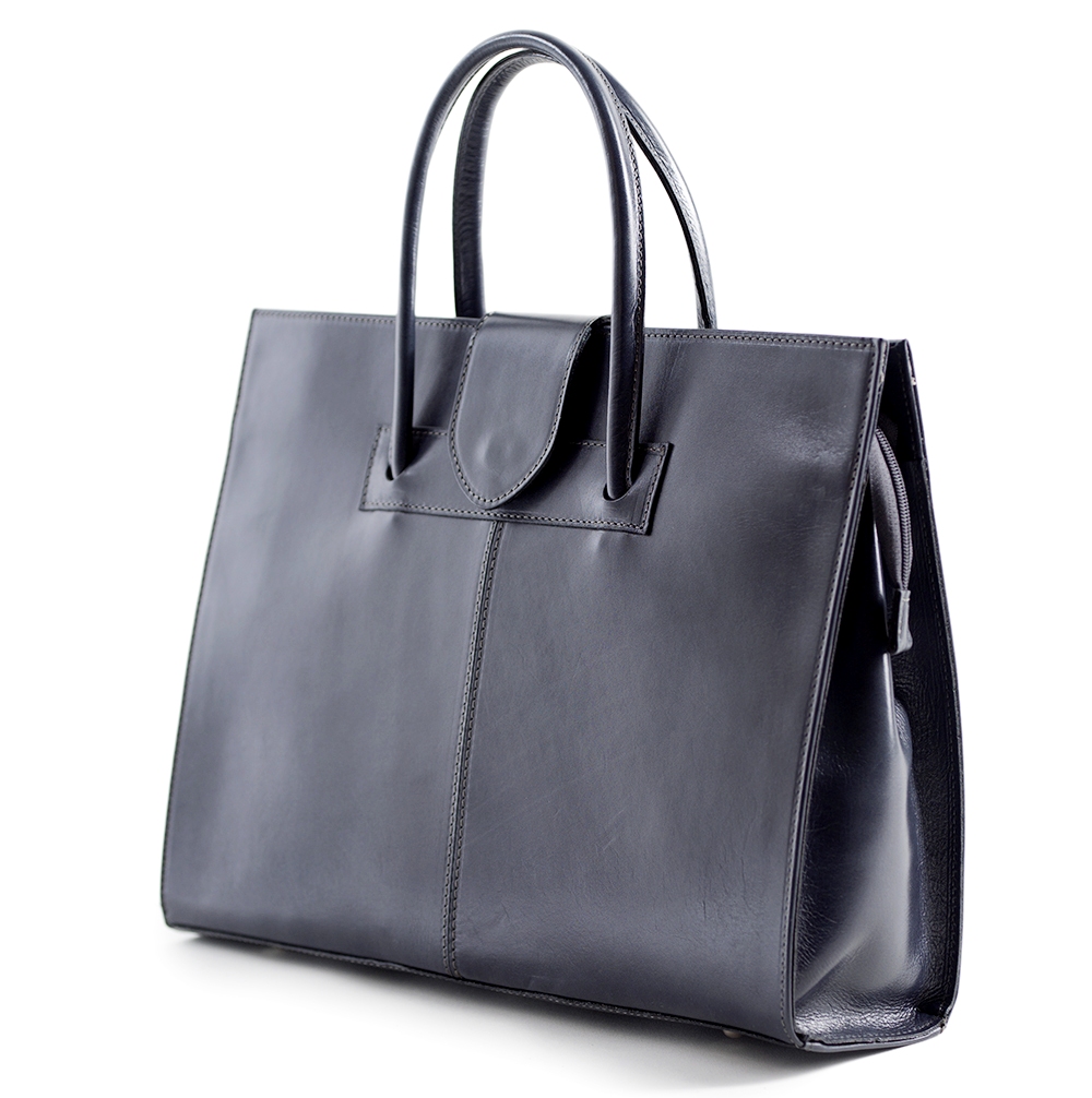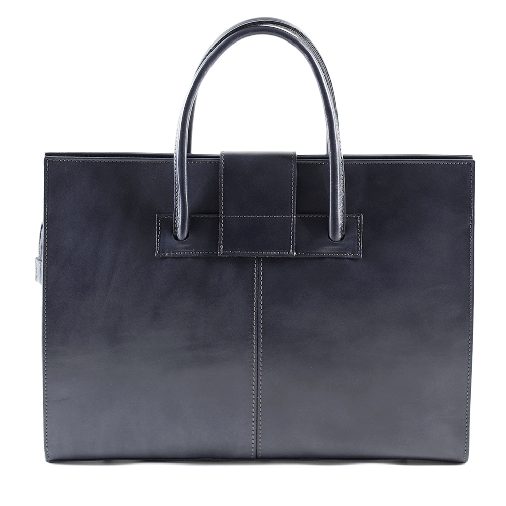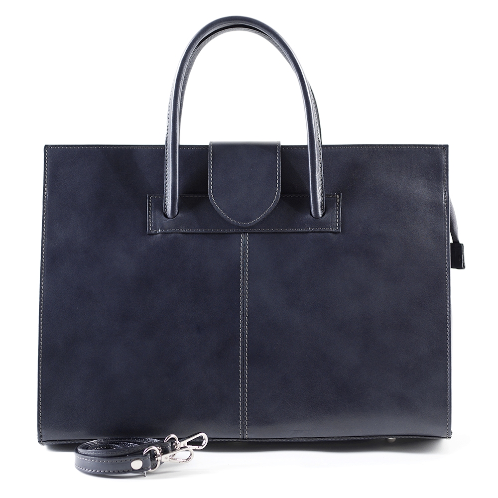 Włoska klasyczna A4 skórzana teczka / aktówka wykonana z wysokogatunkowej naturalnej gładkiej skóry licowej. Zamykana z góry na suwak + klapa na magnes. Teczka dwukomorowa przedzieloną dużą kieszenią na suwak na całej szerokości. Wewnątrz jedna kieszonka na zamek, jedna na telefon + miejsce na długopisy, wizytówki. Wnętrze wykończone trwałą, czarną podszewką. Teczka od spodu usztywniona oraz podbita ćwiekami, co chroni ją przeciw uszkodzeniom. Elementy wykończenia w kolorze srebrnym. Dodatkowy długi pasek na ramię o długości 92 cm.