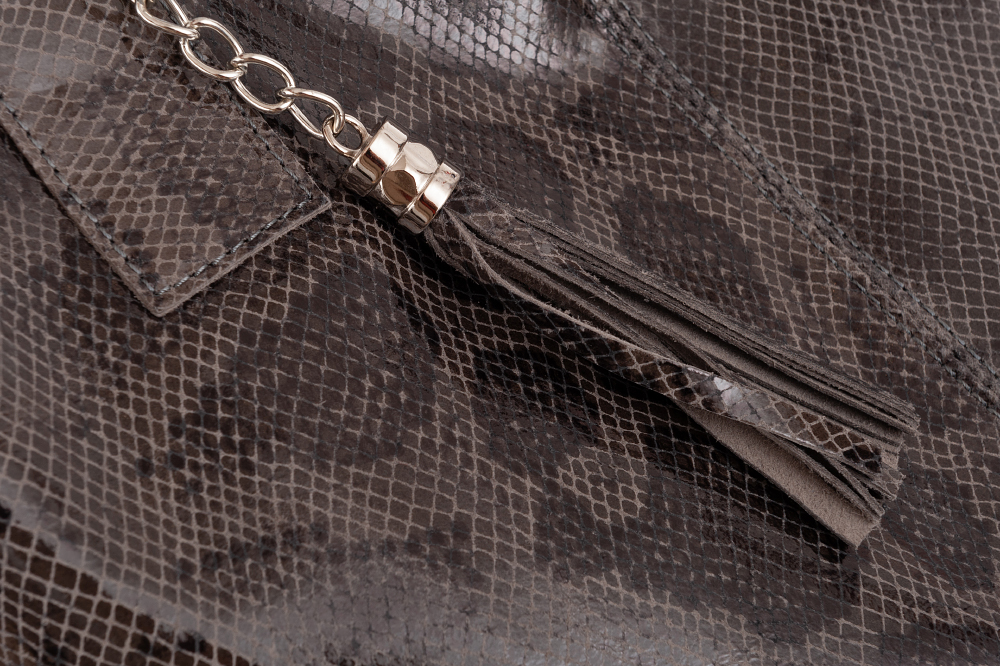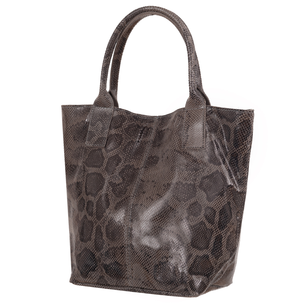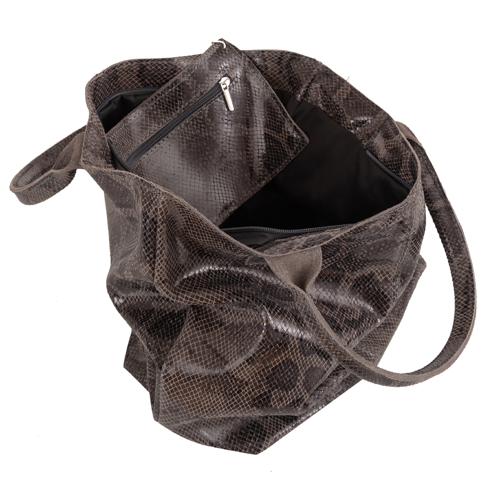 VERA PELLE Włoska skórzana torebka / worek wykonana z miękkiej, wysokogatunkowej naturalnej miękkiej lakierowanej skóry z fakturą łuski. Bardzo oryginalny i praktyczny model. Zamykana z góry na zamek. W środku duża komora wykończona podszewką + kieszonka na zamek + saszetka zamykana na suwak. Elementy wykończenia w kolorze srebrnym. Modny pęk frędzli z przodu torebki.
