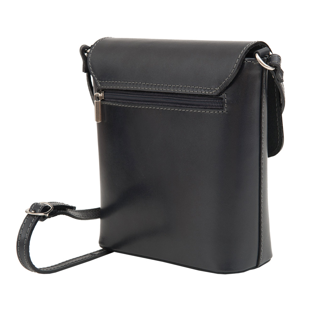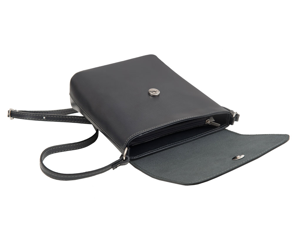 VERA PELLE włoska skórzana listonoszka wykonana z wysokogatunkowej naturalnej gładkiej skóry licowej. Zamykana z góry na suwak + klapka na magnes. Torebka jednokomorowa, wewnątrz jedna kieszonka na zamek + kieszonka na telefon. Wnętrze wykończone trwałą , ciemną podszewką. Z tyłu kieszonka na suwak. Długi, regulowany pasek umożliwia wygodne noszenie na ramieniu. Elementy metalowe w kolorze srebrnym.
