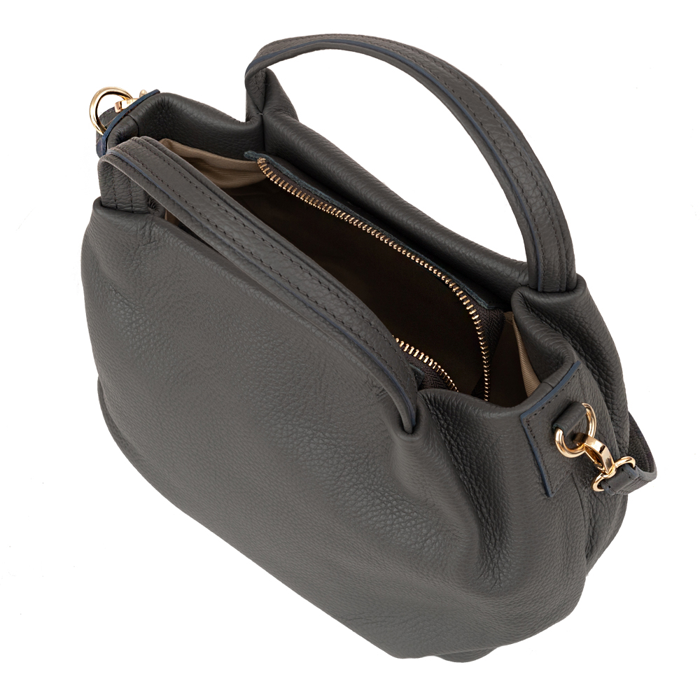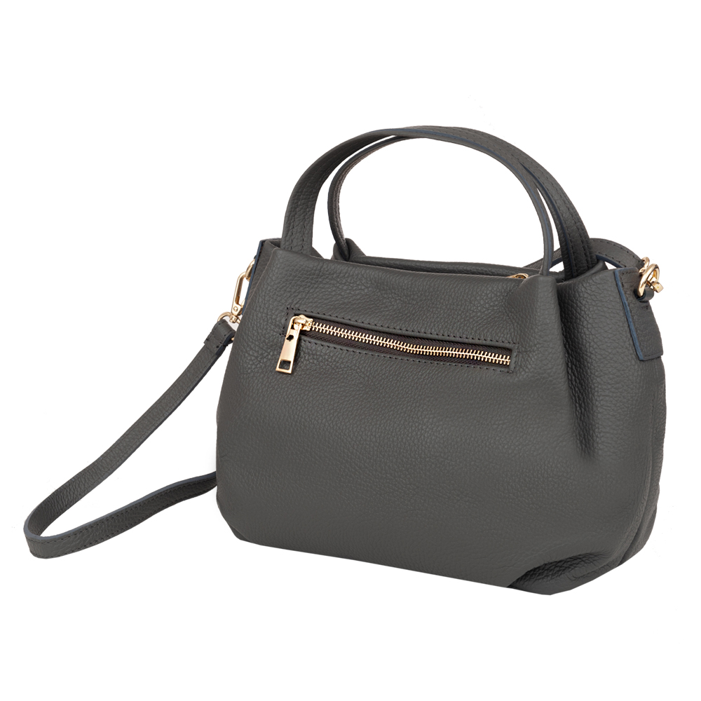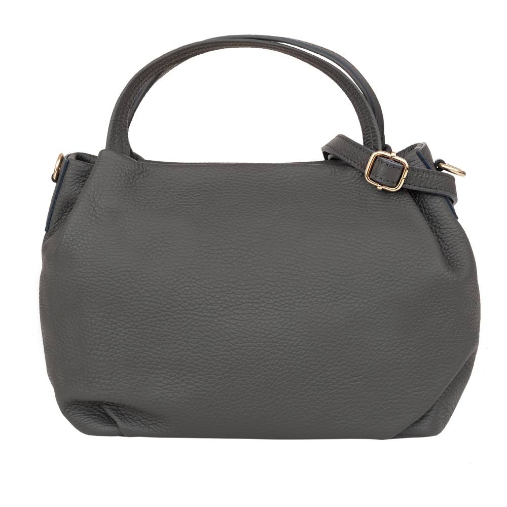 Włoska skórzana torebka wykonana z miękkiej skóry naturalnej. Skóra odporna na zarysowania. Zamykana z góry na suwak. Torebka jednokomorowa + wewnątrz jedna kieszonka na zamek oraz jedna na telefon + kieszeń wsuwna. Dodatkowo z tyłu torebki kieszeń na zamek. Wnętrze wykończone trwałą podszewką dopasowaną pod kolor skóry. Dodatkowy pasek z możliwością regulacji długości 60 - 120 cm. Metalowe elementy w kolorze złotym. Dno lekko usztywnione.