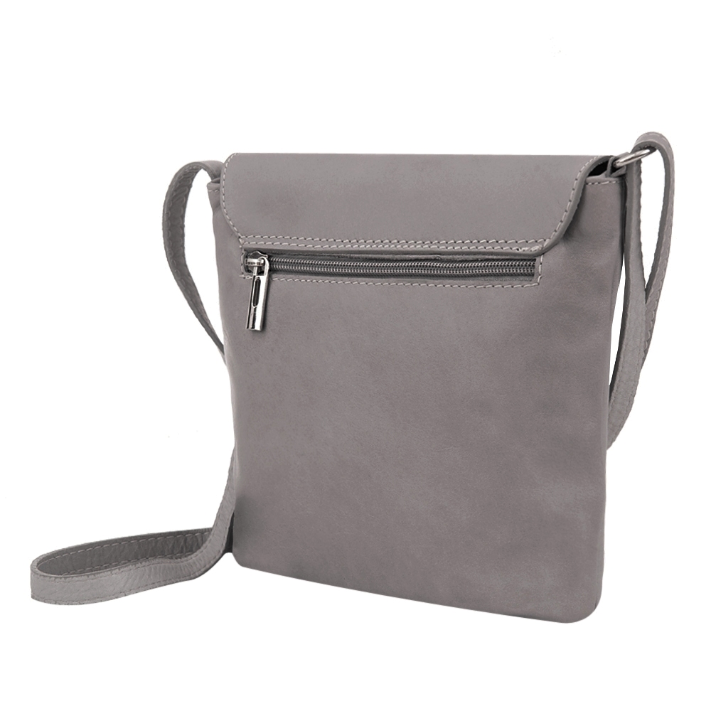 Włoska skórzana duża torebka / listonoszka wykonana z wysokogatunkowej naturalnej miękkiej skóry cielęcej. Zamykana od góry na zamek + klapka. Torebka jednokomorowa, wewnątrz dodatkowo jedna kieszonka na zamek + kieszonka na telefon + z tyłu torebki kieszonka na suwak. Wnętrze wykończone trwałą podszewką. Długi, regulowany pasek umożliwia wygodne noszenie na ramieniu lub przez ramię. Elementy wykończenia w kolorze srebrnym.