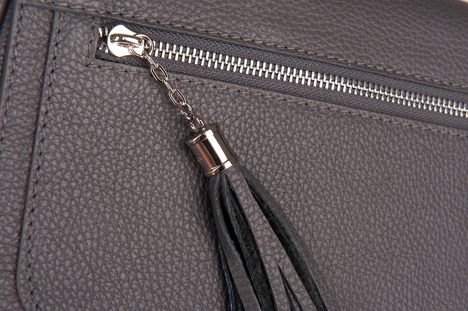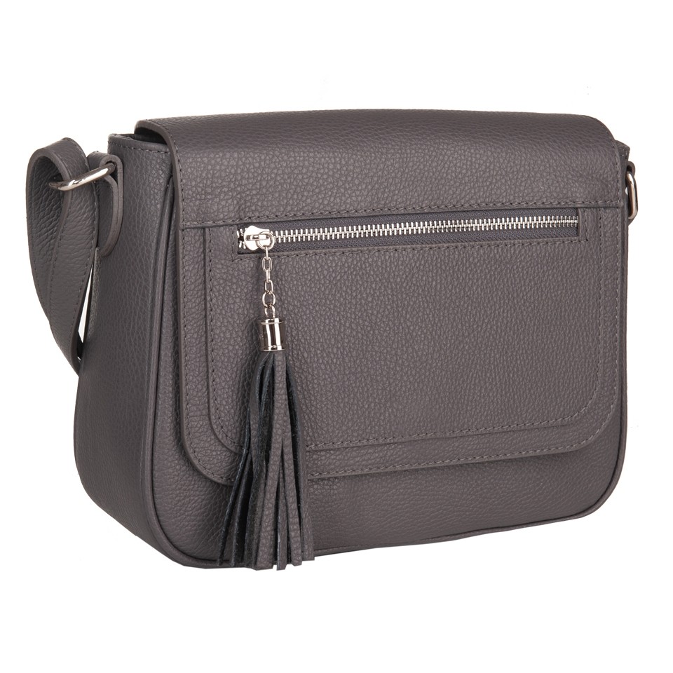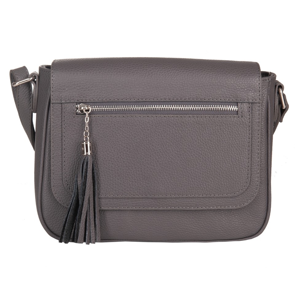 Vera Pelle - Włoska klasyczna skórzana torebka / listonoszka z klapą wykonana w całości ze skóry naturalnej. Skóra mocna, odporna na zarysowania. Zamykana z góry na zamek na całej szerokości + klapa na magnes. Torebka jednokomorowa + w środku kieszonka na zamek + kieszonka na telefon. Dodatkowo z tyłu torebki kieszeń na zamek + kieszonka z przodu na klapie zakończona modnym pękiem frędzli. Wnętrze wykończone trwałą, materiałową podszewką. Metalowe elementy w kolorze srebrnym. Dno lekko usztywnione. Pełna regulacja długości paska. Torebkę można swobodnie nosić przez ramię jako listonoszkę.