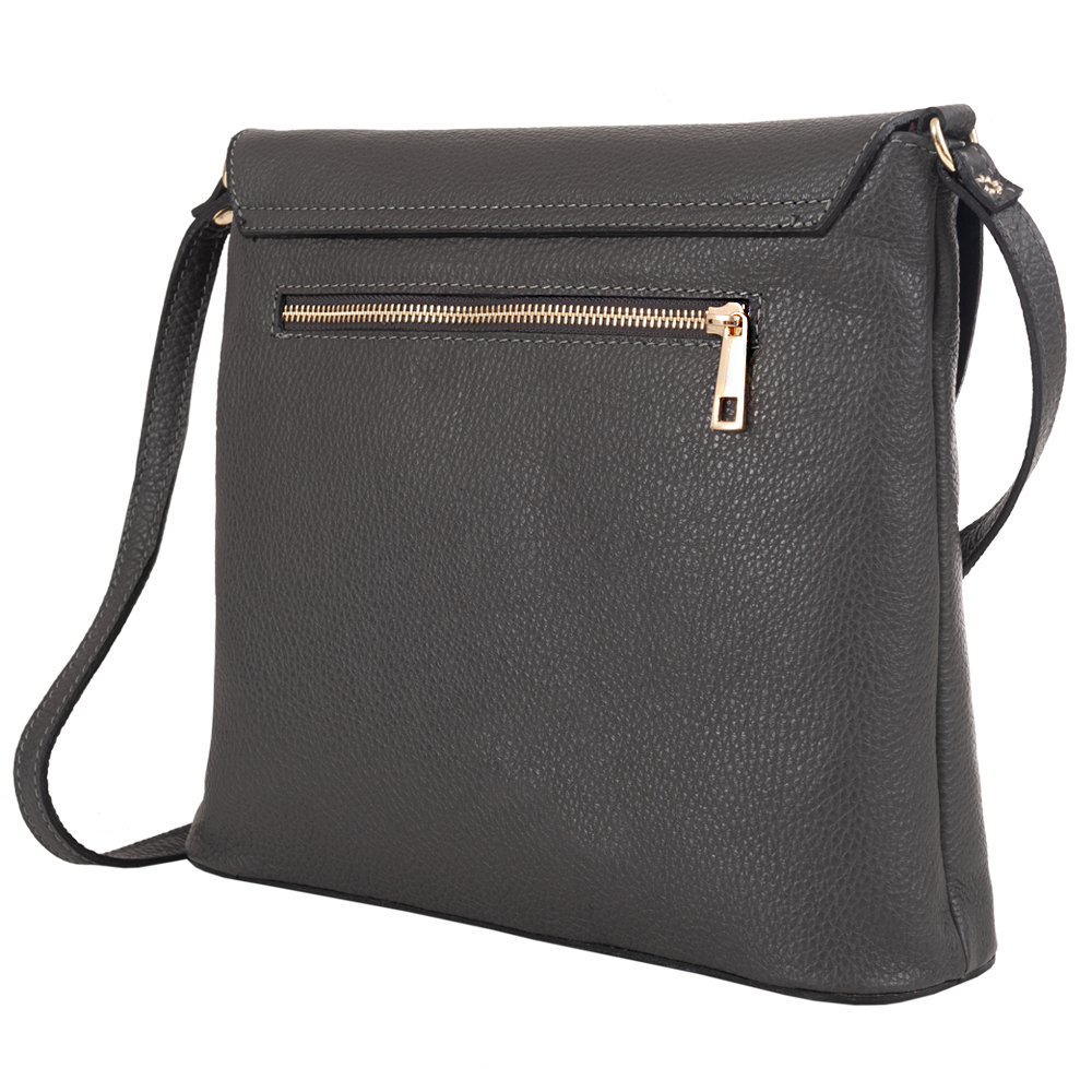 Vera Pelle - Włoska skórzana torebka listonoszka wykonana z wysokogatunkowej miękkiej naturalnej skóry. Zamykana od góry na zamek na całej szerokości + klapla na magnes. Torebka jednokomorowa + wewnątrz dodatkowo jedna kieszonka na zamek. Możliwość przedłużenia paska, aby nosić torebkę jak listonoszkę. Dodatkowa kieszonka na zamek z tyłu torebki. Metalowe elementy w kolorze złotym. Dno torebki usztywnione. Wykończenie na najwyższym poziome pozwoli cieszyć sie torebką przed długi czas. Mocna i odporna na zarysowania skóra.