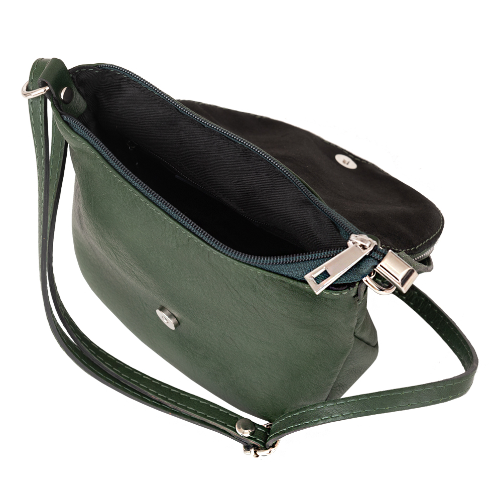 Włoska skórzana listonoszka wykonana z wysokogatunkowej naturalnej gładkiej skóry cielęcej. Zamykana na dużą klapę na magnes + suwak. Torebka jednokomorowa, wewnątrz jedna kieszonka na zamek. Wnętrze wykończone trwałą podszewką. Długi, regulowany pasek umożliwia wygodne noszenie na ramieniu. Dodatkowa kieszeń w klapie torebki na suwak.