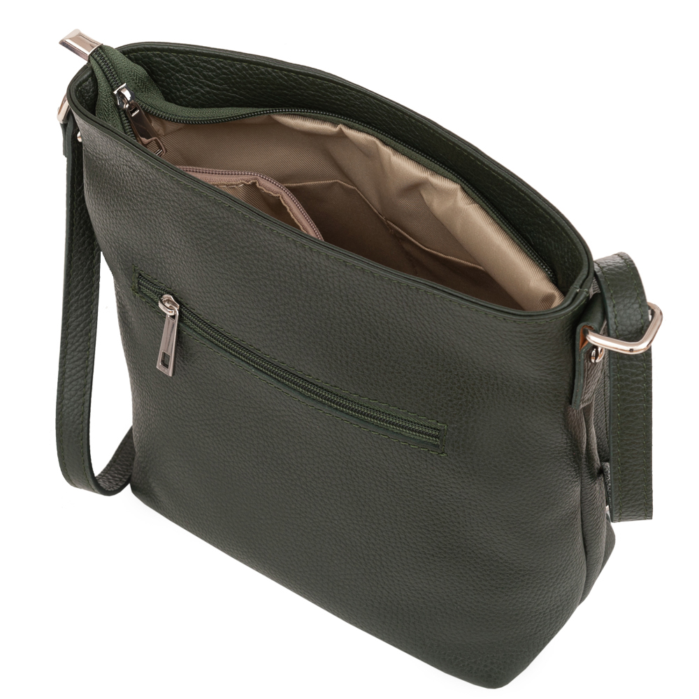Vera Pelle - Włoska skórzana torebka listonoszka wykonana z wysokogatunkowej miękkiej naturalnej skóry dolaro. Zamykana od góry na zamek na całej szerokości. Torebka jednokomorowa + wewnątrz dodatkowo jedna kieszonka na zamek. Możliwość przedłużenia paska, aby nosić torebkę jako listonoszkę. Dodatkowa kieszonka na zamek z tyłu torebki. Metalowe elementy w kolorze srebrnym. Dno torebki usztywnione. Wykończenie na najwyższym poziome pozwoli cieszyć sie torebką przed długi czas. Mocna i odporna na zarysowania skóra.