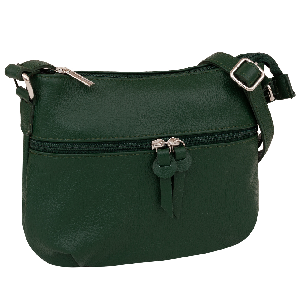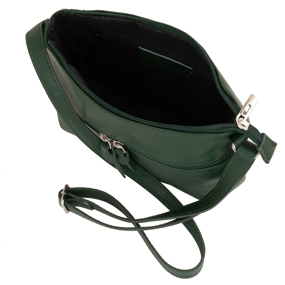 Włoska skórzana torebka listonoszka wykonana z wysokogatunkowej naturalnej skóry firmy VERA PELLE. Pojemny i poręczny model torebki. Torebka jednokomorowa, w środku kieszonka na zamek + kieszonka wsuwna na telefon. Metalowe elementy w kolorze srebrnym. Pasek z możliwością regulacji długości. Dodatkowa kieszonka z przodu i z tyłu torebki na zamek.