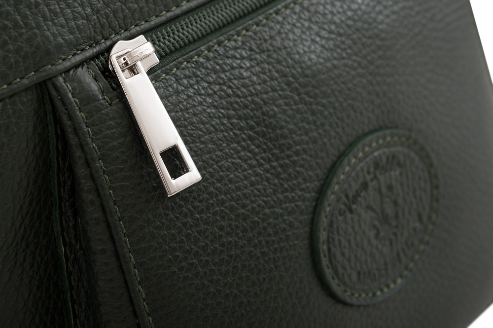Vera Pelle - Włoska skórzana pojemna listonoszka wykonana z wysokogatunkowej skóry naturalnej. Zamykana szczelnie od góry na zamek na całej szerokości. Torebka jednokomorowa, wewnątrz jedna kieszonka na zamek + dwie wsuwne kieszonki m.in. na telefon. Wnętrze wykończone trwałą , materiałową podszewką. Długi, regulowany pasek umożliwia wygodne noszenie na ramieniu lub przez ramię jako listonoszka. Dodatkowa pojemna kieszeń z tyłu na zamek + kieszonka z przodu. Elementy wykończenia w kolorze srebrnym. Dno lekko usztywnione.