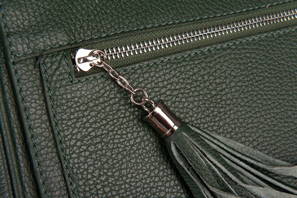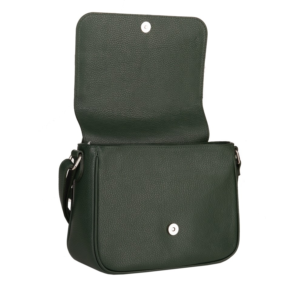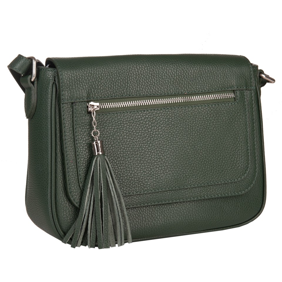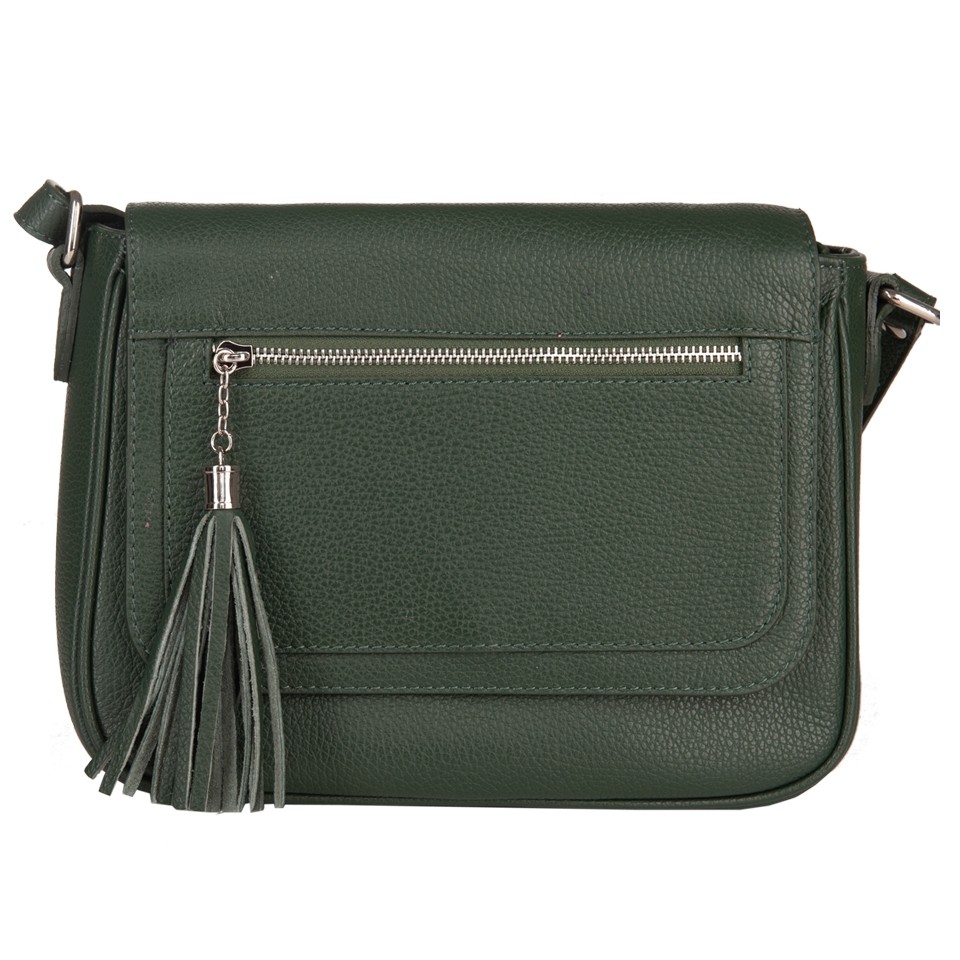 Vera Pelle - Włoska klasyczna skórzana torebka / listonoszka z klapą wykonana w całości ze skóry naturalnej. Skóra mocna, odporna na zarysowania. Zamykana z góry na zamek na całej szerokości + klapa na magnes. Torebka jednokomorowa + w środku kieszonka na zamek + kieszonka na telefon. Dodatkowo z tyłu torebki kieszeń na zamek + kieszonka z przodu na klapie zakończona modnym pękiem frędzli. Wnętrze wykończone trwałą, materiałową podszewką. Metalowe elementy w kolorze srebrnym. Dno lekko usztywnione. Pełna regulacja długości paska. Torebkę można swobodnie nosić przez ramię jako listonoszkę.