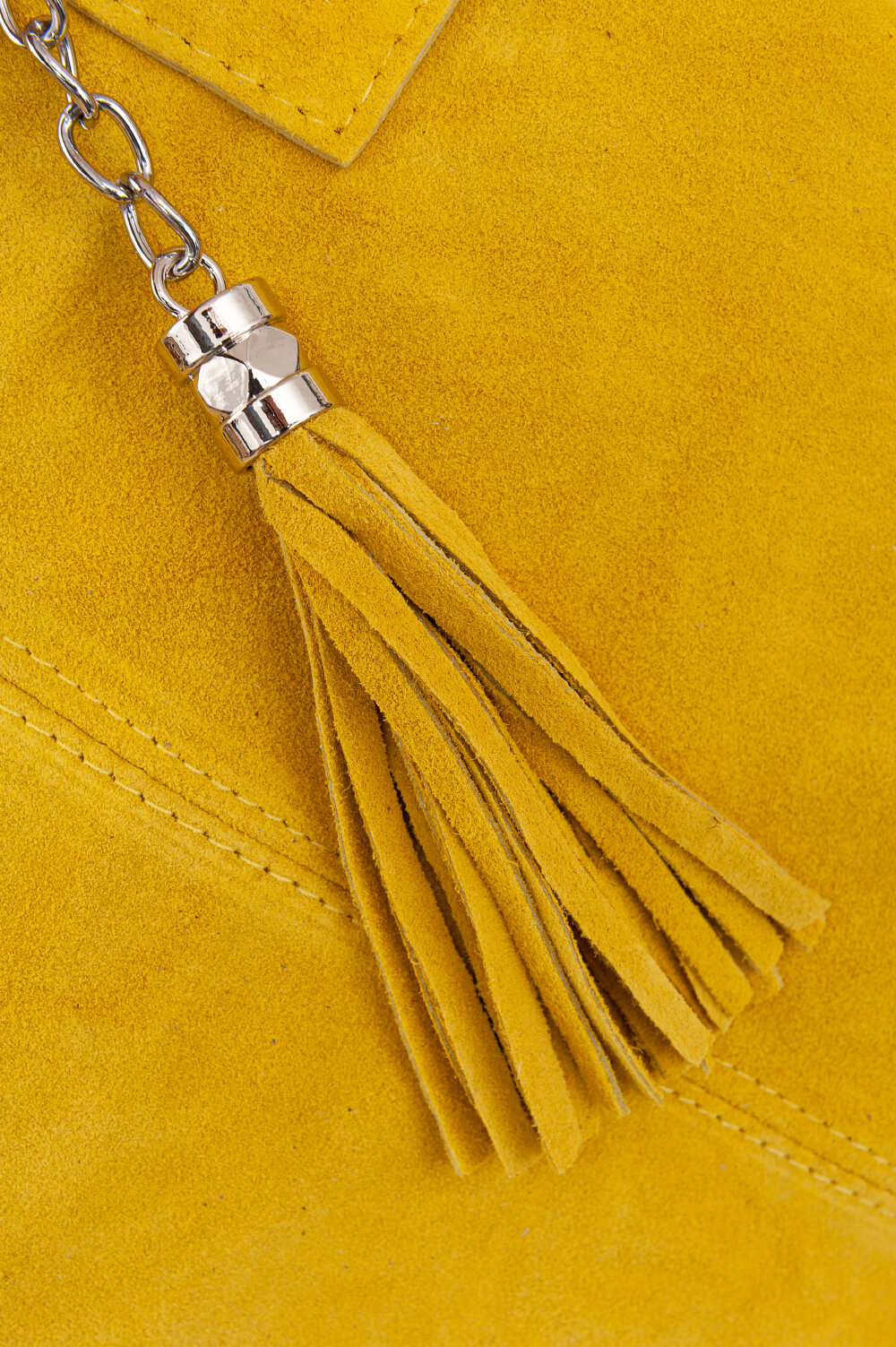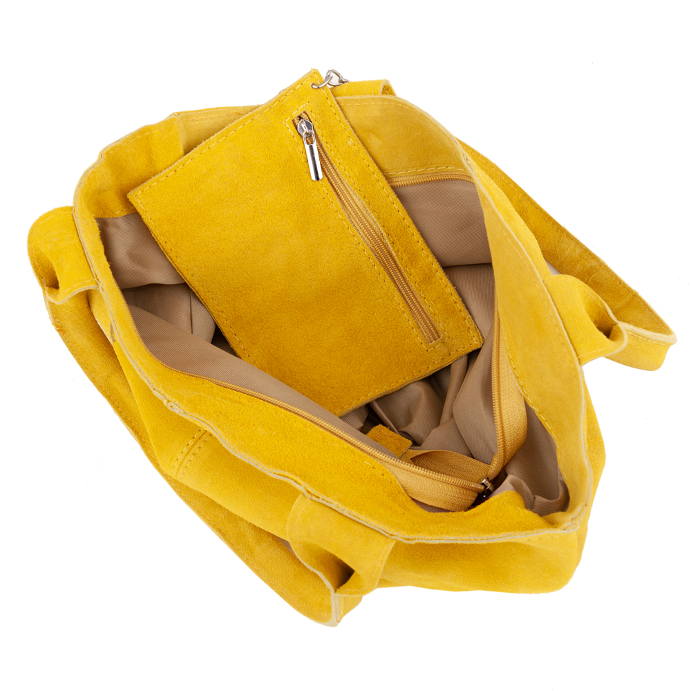 VERA PELLE - Włoska skórzana torebka worek wykonana z wysokogatunkowej naturalnej skóry zamszowej. Bardzo oryginalny i praktyczny model. Zamykana z góry na zamek. W środku mocna, materiałowa podszewka. Kieszonka na suwak + saszetka na suwak w środku + miejsce na telefon. Elementy wykończenia w kolorze srebrnym. Modny pęk frędzli z przodu torebki. Swobodnie można nosić ją w dłoni, przedramieniu jak i na ramieniu. Zamsz miękki, przyjemny w dotyku.