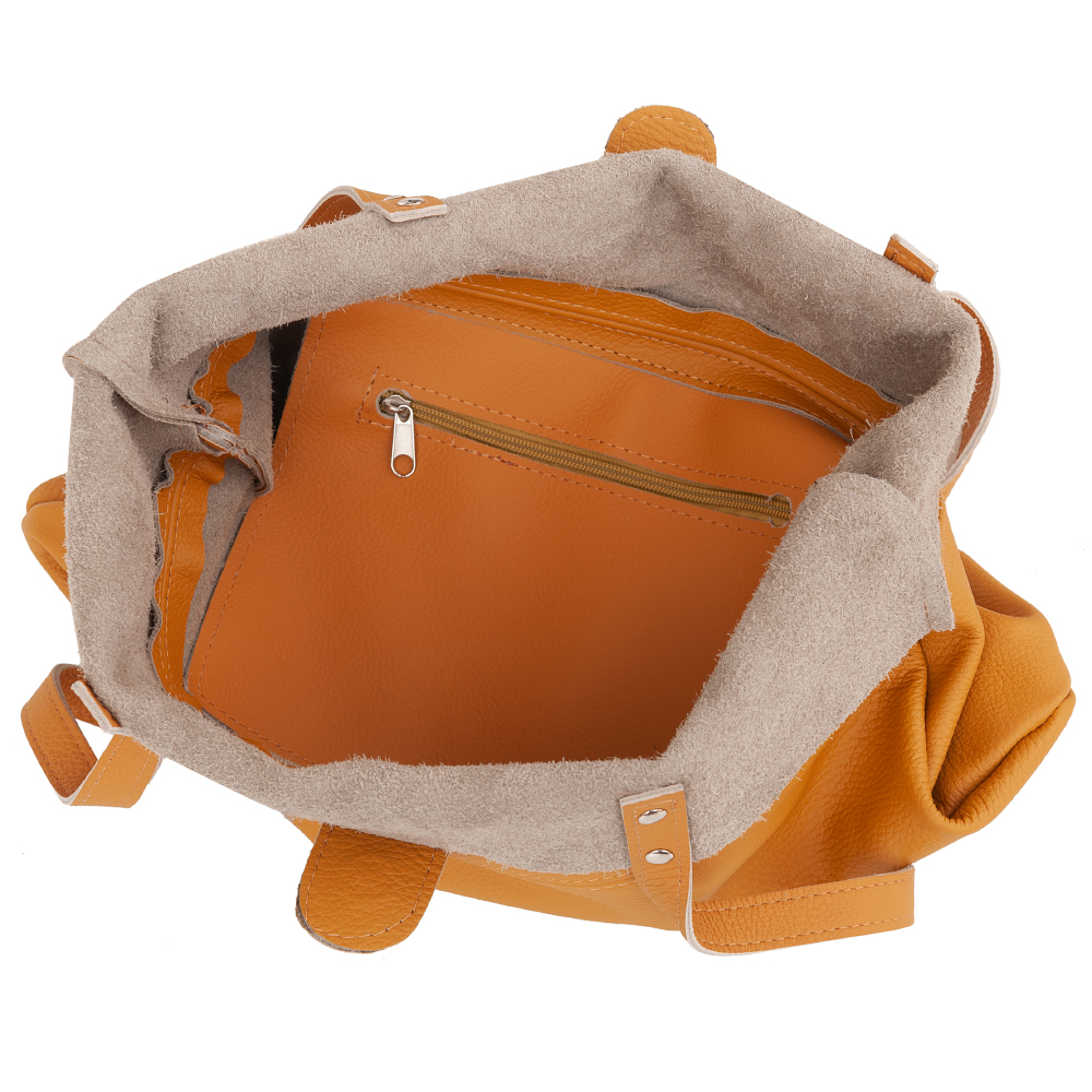 Modna pojemna torebka XL worek wykonana z najwyższej jakości miękkiej skóry naturalnej. Worek jest praktyczny, pojemny, bez problemu mieści format A4 oraz inne niezbędne rzeczy. Idealnie pasuje do stylizacji w miejskim stylu. Torebkę można nosić na kilka różnych sposobów, gdyż posiada dwa paski o różnej długości. Dłuższy jest odpinany. Torebka jednokomorowa, w środku duża kieszeń na zamek. Torba wykończona na surowo skórą naturalną. Dłuższy pasek skórzany z możliwością regulacji długości do max 135 cm