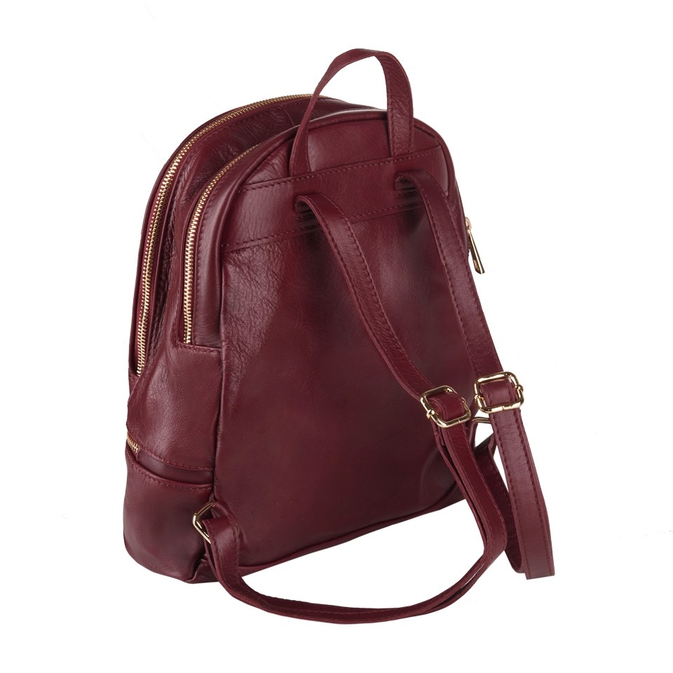 MADE IN ITALY - BORSE IN PELLE. Włoski modny i elegancki skórzany PLECAK torba wykonany w całości z wysokogatunkowej naturalnej, gładkiej miękkiej skóry cielęcej. Zamykany dookoła na zamek. W głównej komorze kieszeń na telefon + kieszonka na zamek. Wnętrze wykończone materiałową trwałą, czarną podszewką. Dodatkowo jedna mniejsza komora + kieszonka pozioma z przodu. Plecak lekko usztywniony od spodu. Elementy wykończenia w kolorze złotym. Uszy z możliwością regulacji długości 47-86 cm. Można nosić jako plecak lub w dłoni.
